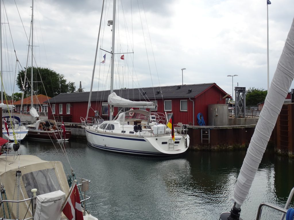 In Lundeborg sind die wenigen in Frage kommenden Boxenplätze leider von Dauerliegern belegt – also längs an die Mole. Glücklicherweise gibt es auch hier einen ablandigen freien Molenplatz. Im Laufe des Tages füllt sich der Hafen beträchtlich – viele Schiffe liegen auch schon nebeneinander im Päckchen. Bei uns möchte glücklicherweise niemand anlegen: wir liegen reichlich dicht an der Hafeneinfahrt und diese würde dann einfach zu eng. Prima – wieder alles richtig gemacht!