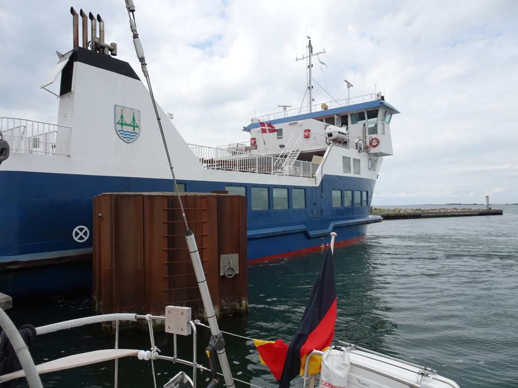Also längsseits vor das Hafenmeisterhäuschen. Der Platz passt zur vorhergesagten Windrichtung, denn bei auflandigem Wind würden wir hier nicht liegen wollen. Dann würden die ganze Nacht die Fender an der Bordwand scheuern und quietschen… wer will das schon. Haben uns also gut festgemacht mit Springs in alle Richtungen… direkt neben uns macht nämlich alle 2 Stunden die kleine Fähre Omø-Agersø fest und die macht ordentlich Schwell. Funktioniert aber alles bestens!