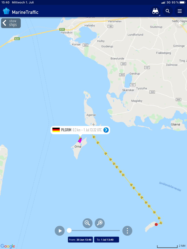 Nach 3 Tagen macht der Wind eine kleine Verschnaufpause und wir legen ab nach Omø – da waren wir das letzte Mal vor über 20 Jahren… noch mit der LM30, dem damaligen Schiff meines Vaters (der leider schon seit 17 Jahren verstorben ist). Wir vertrauen also auf unsere bisherigen Erfahrungen mit leeren Häfen und trauen uns, den kleinen Hafen anzulaufen. Als Alternativen gäbe es sonst noch die Insel Agersø oder Skælskør auf Seeland. Die Welle der letzten Tage hat sich etwas beruhigt und es wird eine angenehmere Überfahrt als befürchtet. Die Windrichtung paßt und wir segeln nur mit dem Vorsegel… so brauchen wir das Großsegel nicht zu reffen – es bleibt einfach eingepackt – und doch kommen wir zügig voran.
