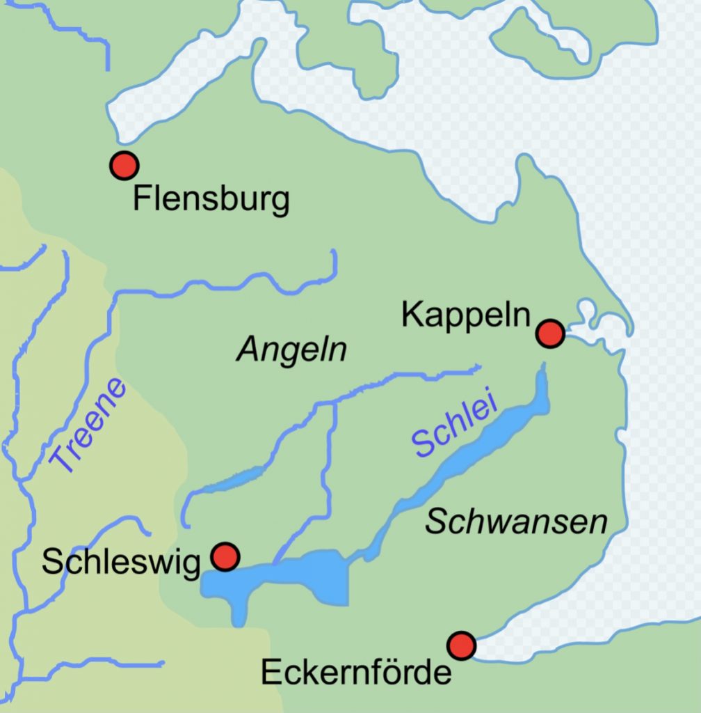Ein bisschen Geschichte lt. Wikipedia: Das Volk der Angeln wurde schon im Jahr 98 n.Chr. erstmals erwähnt. Ab dem 5. Jahrhundert wanderten zahlreiche Angeln nach Britannien aus, wo sie wohl zunächst dienten, schließlich aber die Herrschaft an sich rissen. Sie nahmen dabei den Namen ihrer Heimatregion mit, sodass sowohl England als auch die englische Sprache ihren Namen letztlich auf die Halbinsel Angeln zurückführen.