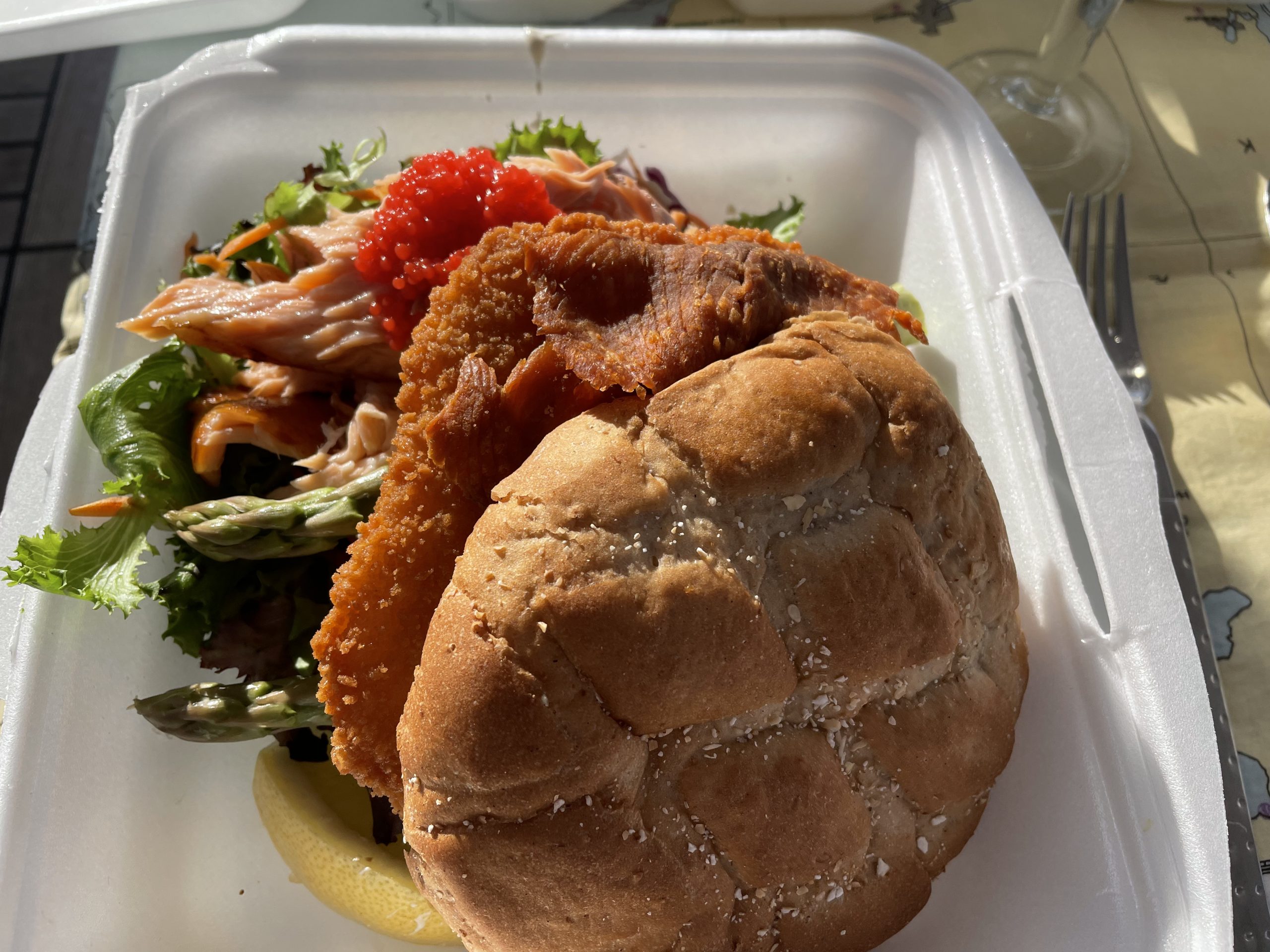 Zum Abendessen genießen wir Fisch aus der Fischhalle am Fischereihafen (sehr zu empfehlen und deutlich leckerer als von Gosch am Yachthafen) und gehen früh zu Bett – morgen wollen wir wirklich zeitig starten.
