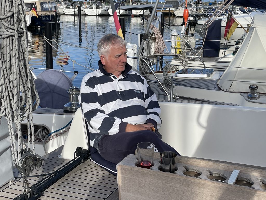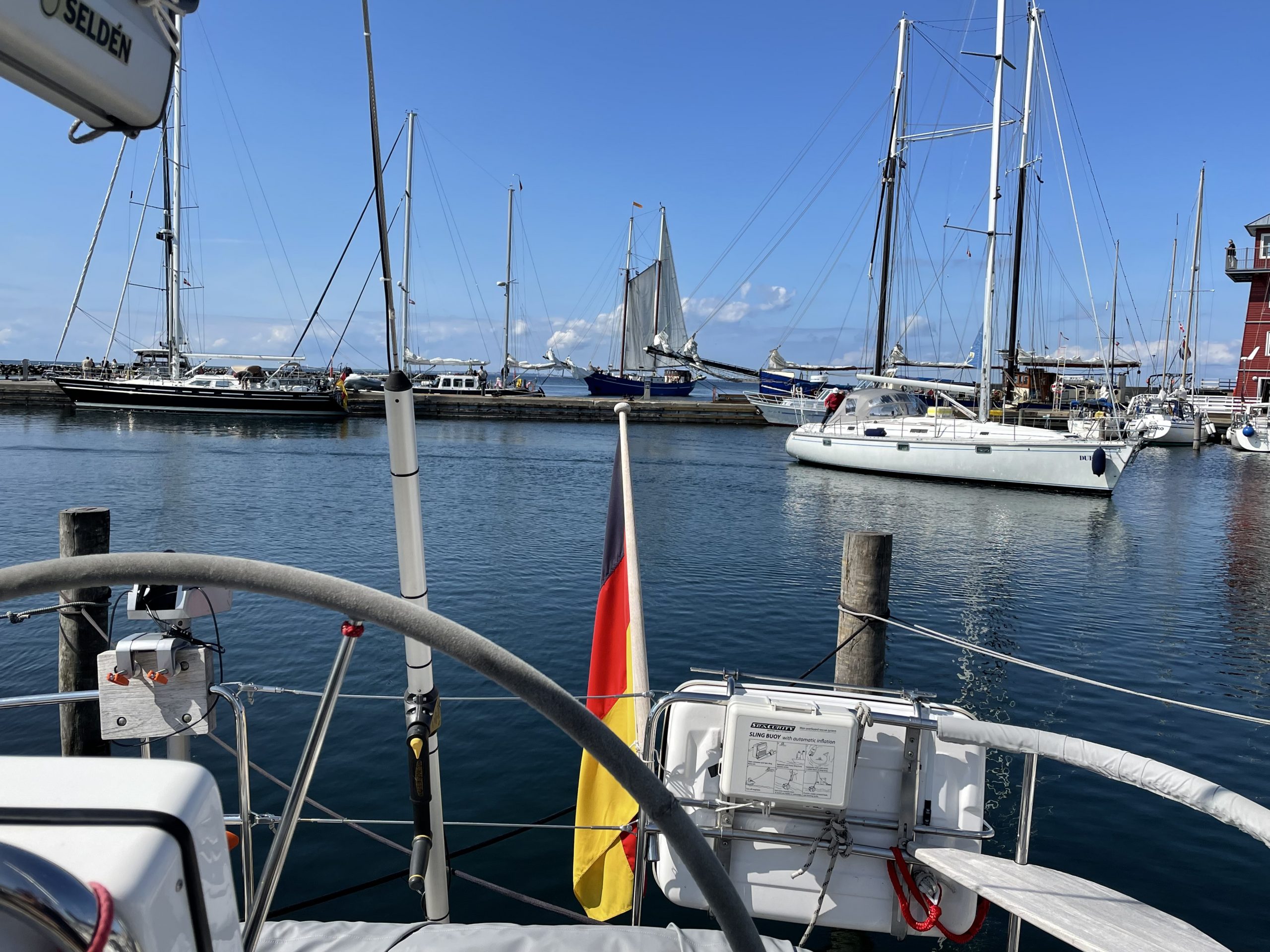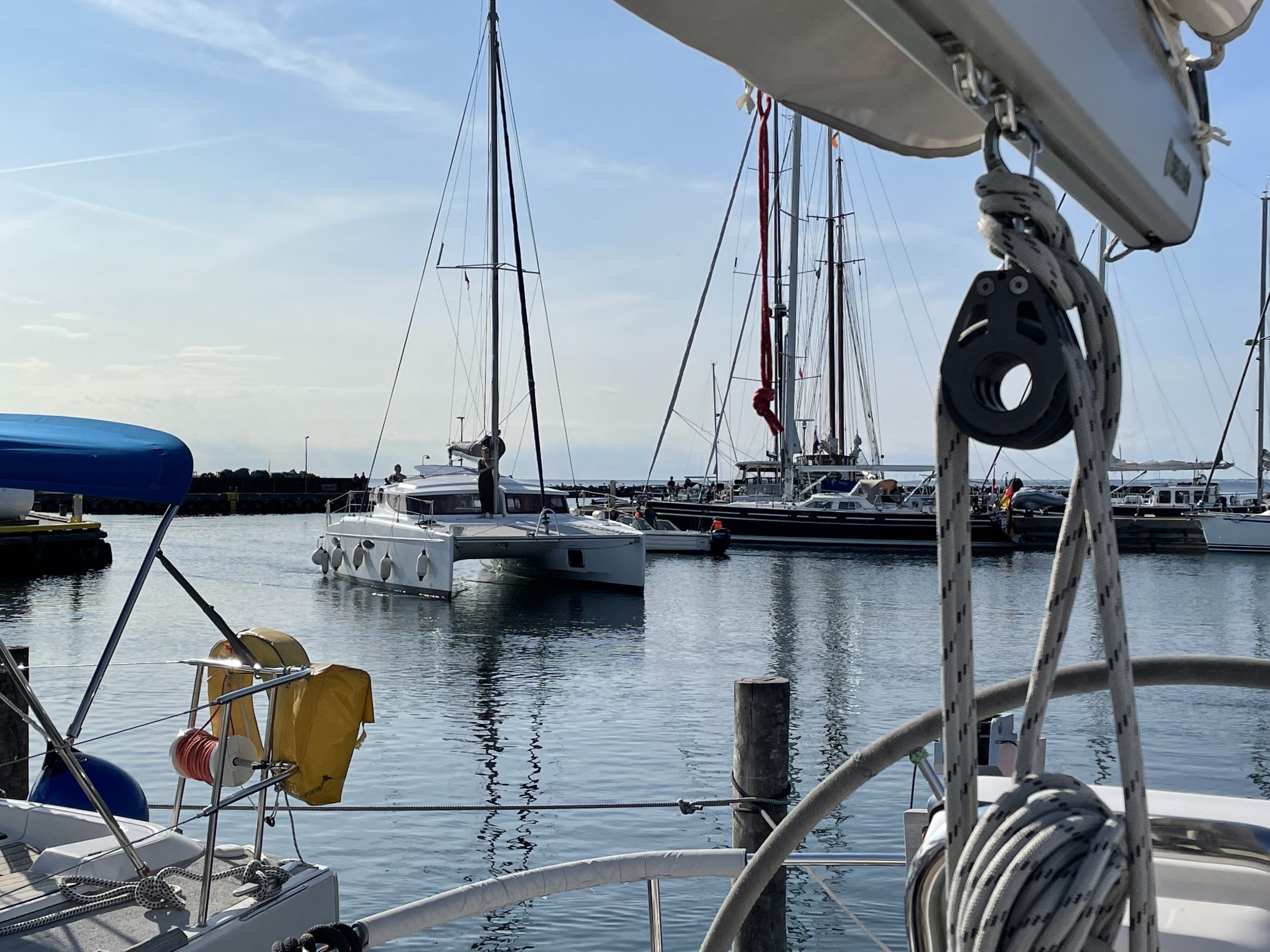 Wir segeln erstmal… nicht los. Die mittlere Windstärke ist soweit ok, aber die immer wieder heftig einfallenden Böen laden nicht zum ablegen ein. Also gaaanz entspannt ins Cockpit setzen, an einem leckeren Drink nippen und die Ruhe des Hafens genießen. An einem Donnerstag ist es doch deutlich weniger geschäftig als am Wochenende. Die Wetter- und Windaussichten für Freitag sind ok und so bereiten wir alles für einen Start am nächsten Tag vor: Frischwasser auffüllen, Seekarten bereitlegen und früh zu Bett, damit wir dann auch zeitig ablegen können.