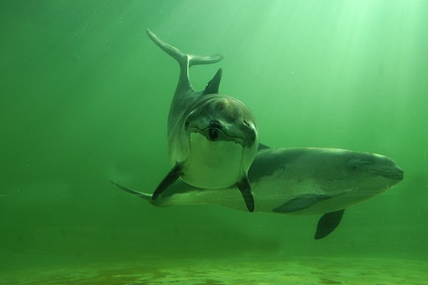 Mit einer Körperlänge von bis zu 2,5 m gehören diese Tiere zu den kleinen Walen. Die Tiere können zwischen 30 und 200 Kilogramm wiegen, abhängig von der Körpergröße. Schweinswale haben einen gedrungenen Körper mit rundem Kopf und stumpfer Schnauze ohne Schnabel. Die Kiefer enthalten bis zu 120 spatelförmige Zähne. Die Finne ist oft dreieckig und sitzt hinter der Rückenmitte. Leider war ich mit dem Fotoapparat wieder nicht schnell genug, daher hier nur ein Foto aus dem Internet.