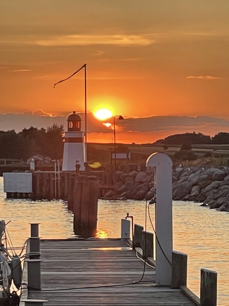 Samstag, 20.08.21 um 05.00h aufstehen, 06.00h ablegen – zum Sonnenaufgang. Wieder nur wenig Wind und so gibt es eine entspannte Motorfahrt nach Bagenkop. Endlich in Dänemark! Die frühe Auslaufzeit in Heiligenhafen wird mit freier Platzwahl im Zielhafen Bagenkop belohnt. 11.45h machen wir an unserem Lieblingsplatz fest. Ab nachmittags nehmen wir dann, versorgt mit kalten Getränken, im Cockpit unsere Logenplätze ein und verfolgen gespannt das Hafengeschehen – Kinos sind ja wieder geöffnet 😜. Das bei viel Wind übliche Anlege-Chaos – oder auch Hafenkino genannt – hällt sich allerdings in Grenzen. Nun haben wir schon mal einen Platz in der ersten Reihe und dann wenig Wind. Das sollte sich allerdings am nächsten morgen deutlich anders darstellen!