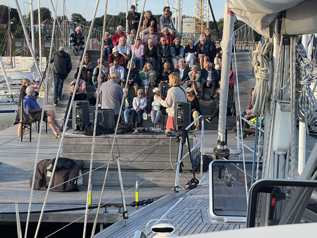 abendliches Konzert direkt vorm Schiff die große Treppe führt hinauf in die Stadt die „Schirmstraße“