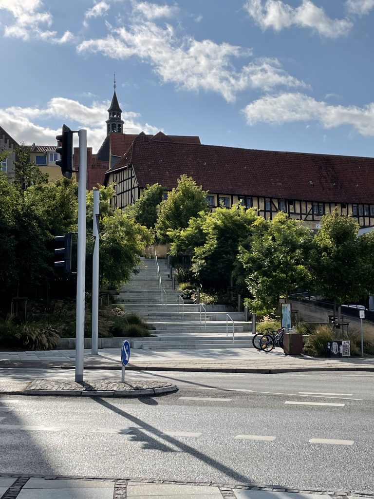 In Svendborg ist reichlich Platz – die dänischen Ferien sind ja schon vorbei – und so können wir wieder an unserem Wunschplatz festmachen: ein moderner Schwimmponton mit Aussichtsplattform im Stadthafen. Hier werden wir jetzt einige Tage bleiben.