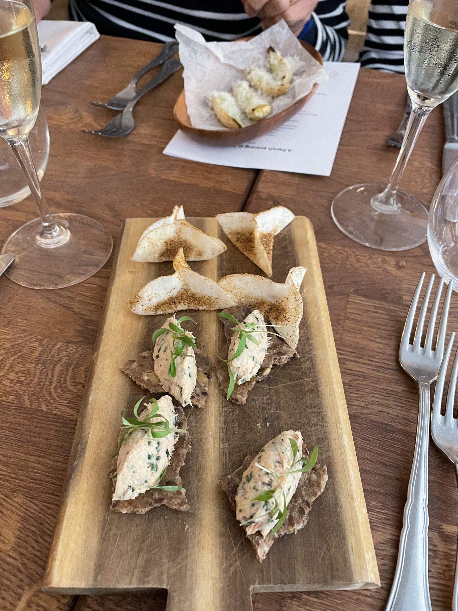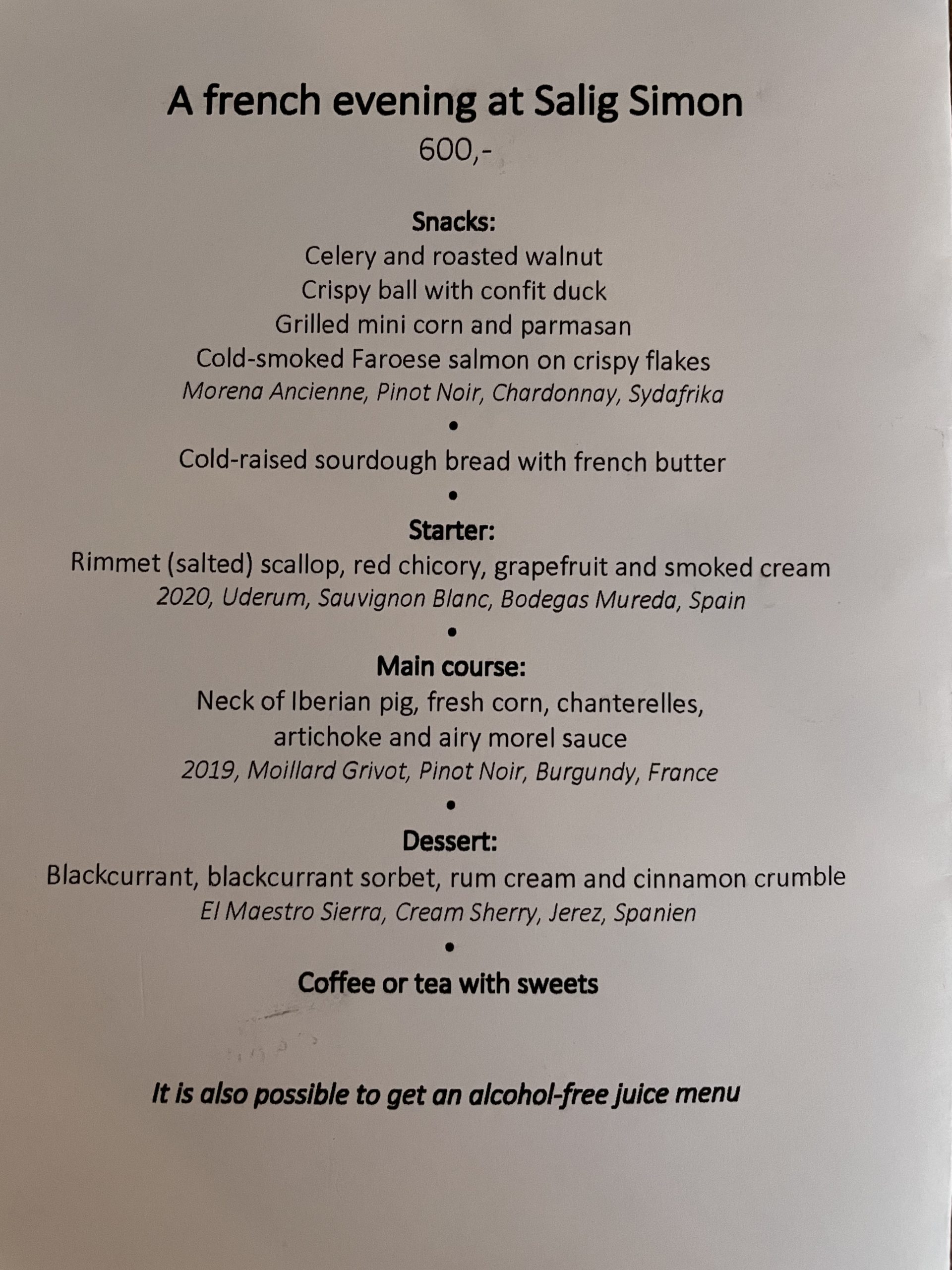 Das „Resumé“ verfolgt ein besonderes Konzept: ca. 4-6 Wochen lang bieten sie nur ein Mehrgangmenü an: mit korrespondierenden Weinen, Appetizer, Vorspeise, Dessert, Digestif… und geschmacklich und handwerklich einfach spitze! Das Konzept scheint so gut anzukommen, dass sie in diesem Jahr ein weiteres, jetzt drittes Gebäude (ein uraltes Fachwerkhaus) hergerichtet haben und auch hier exzellente Speisen in heimeliger Atmosphäre anbieten. Im „Salig Simons Gaard“ finden ca. 28 Personen Platz um sich verwöhnen zu lassen. Und wir jetzt auch! Ist nur zu empfehlen! Ach übrigens: nicht Maske, nur Impfausweis vorzeigen.