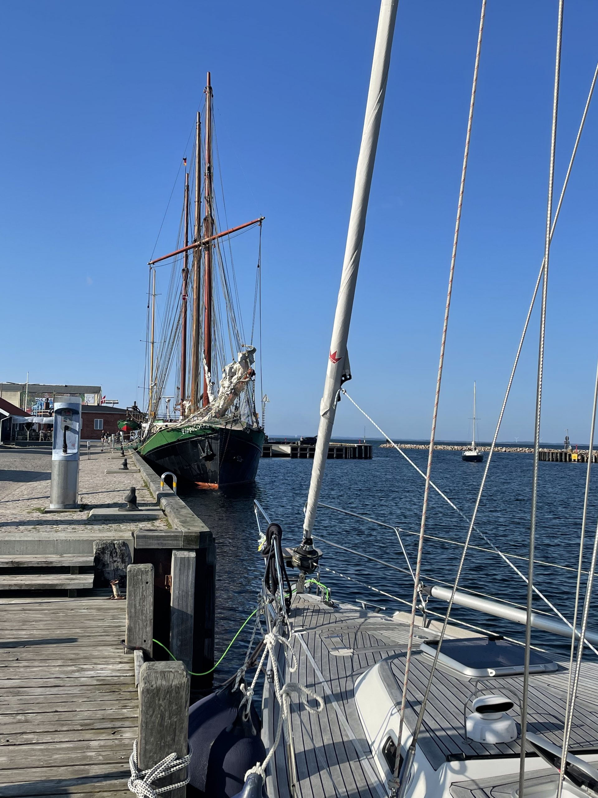 Spaziergang durch den Ort, an den Strand und an den Badesteg… zwar nicht zum baden, aber wenigsten bis fast zum Popo ins Wasser. Es ist herrlich! Der Hafen füllt sich gen Abend doch wieder erheblich, sogar drei (!) Traditionssegler machen an der Außenmole fest. Ein schönes Bild. Abends sündigen wir dann wieder mit den in Bagenkop obligatorischen Burgern mit Pommes – sind hier einfach ein Muss!