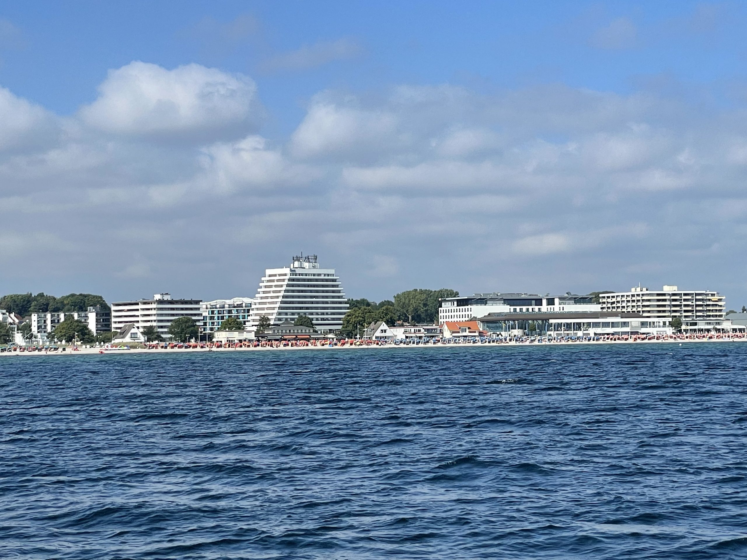 Leider bleibt der Wind auch weiterhin sehr zurückhaltend, dafür kommt die Sonne raus – Wolfgang hatte recht. Und so wird es eine Motorbootfahrt nach Grömitz. Wir hatten uns da einen schöneren Abschluss gewünscht, aber… c’est la vie. Kann nicht alles klappen. Bei Dahmeshöved nimmt der Wind kurzzeitig etwas zu und wir schnell unsere Segel hoch… um nach 30min. alles wieder rückgängig zu machen. Das war ein kurzes letztes Segelvergnügen. Kurz vor Grömitz legte der Wind dann doch noch auf eine schöne Segelstärke zu, allerdings hatten wir da schon die Seebrücke von Grömitz querab und so blieben die Segel eingepackt. Jetzt wollten wir auch nicht mehr.