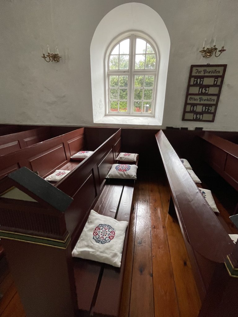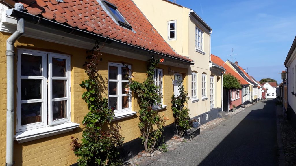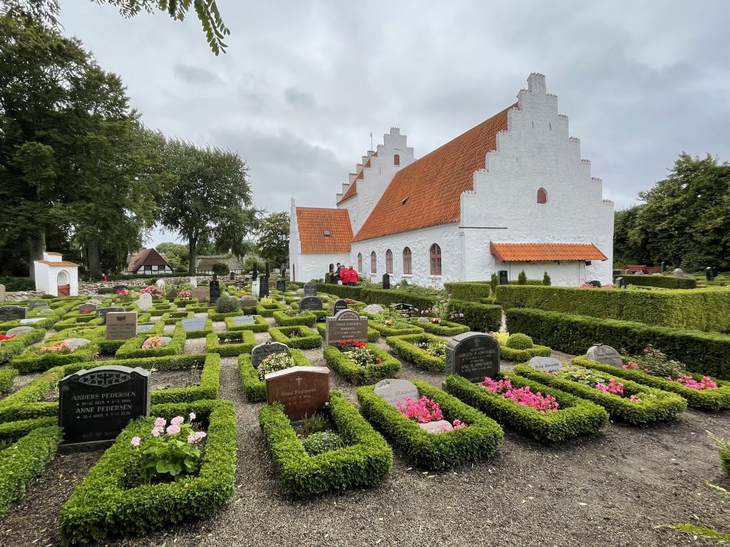 Dann erreichen wir die Kirche aus der Reformationszeit mit Dänemarks einzigem erhaltenen Rundfriedhof. Er soll auch einer der schönsten Friedhöfe sein: jede einzelne Grabstätte ist mit einer kleinen Buchsbaumhecke eingefasst und liebevoll bepflanzt. Auf jeden Fall lohnt sich der Spaziergang vom Hafen bis hierher!