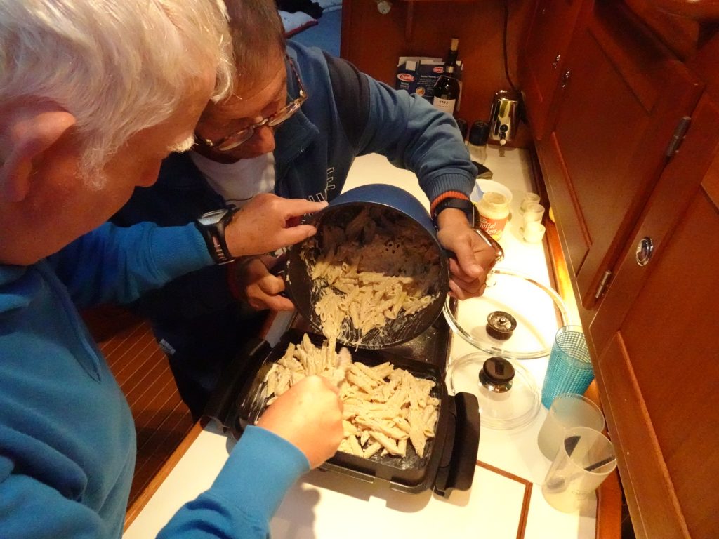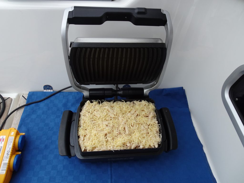 Abends wird mal wieder der Opti-Grill bemüht: diesmal mit Backschale für Nudelauflauf. Wolfgang bereitet alles vor und agiert als Küchenchef. Gelingt wieder prima und ist sehr lecker. Das Rezept wird gleich für eine erneute Verwendung abgespeichert.