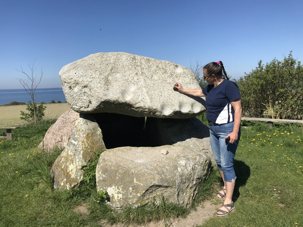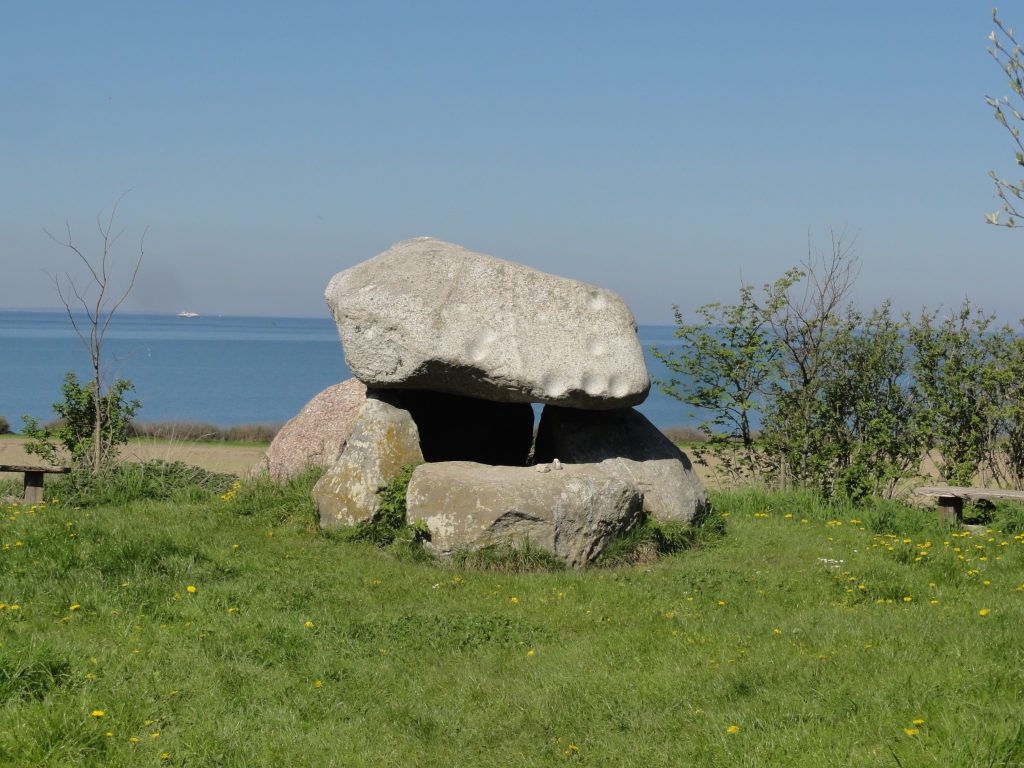 Wer noch mehr Bewegungsdrang verspürt, der sollte bis zu dem Klokkesten/ Glockenstein wandern. Auf Lyø lagen ursprünglich 52 Grabhügel und Dolmen. Heute sind nur noch 5 erhalten. Die freistehende Dolmenkammer des West-Ost orientierten Klokkesten liegt im Westen der Insel auf einem ca. 20m hohen Erdhügel. Fünf Tragsteine, zwei auf jeder Seite, ein Endstein im Westen und ein großer Schwellenstein in der Kammeröffnung bilden zusammen mit dem großen Deckstein die innen 1,8 × 1,2 m messende Kammer der zwischen 3500 und 2800 v. Chr. entstandenen Megalithanlage. Die Dolmen dienten als Grabkammer für die Spitzen der Gesellschaft und ihrer Familien. Der Deckstein, der klingt, wenn man mit einem Stein gegen ihn schlägt, hat dem Dolmen den Namen gegeben. Im Deckstein befinden sich große, schalenförmige Vertiefungen von den vielen Schlägen der Besucher, die den Stein klingen hören wollen. Angeblich soll dann ein Wunsch in Erfüllung gehen. Von der Anlage aus hat man einen schönen Blick über den Kleinen Belt, auf Horneland und Lyø Trille. Um 1920 wurde um den Glockenstein ein Hain angelegt, in dem sich die Inselbewohner zur Grundgesetzfeier trafen.