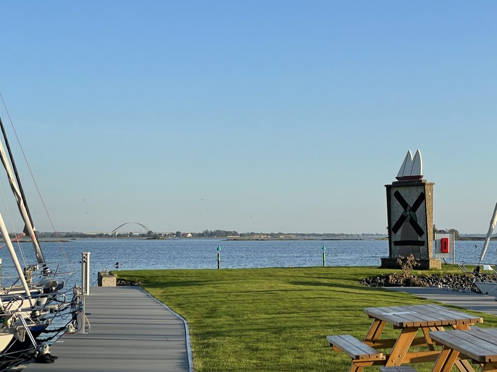 das Zeichen des Lemkenhafener Segelclubs – im Hintergrund die Fehmarnsund-Brücke