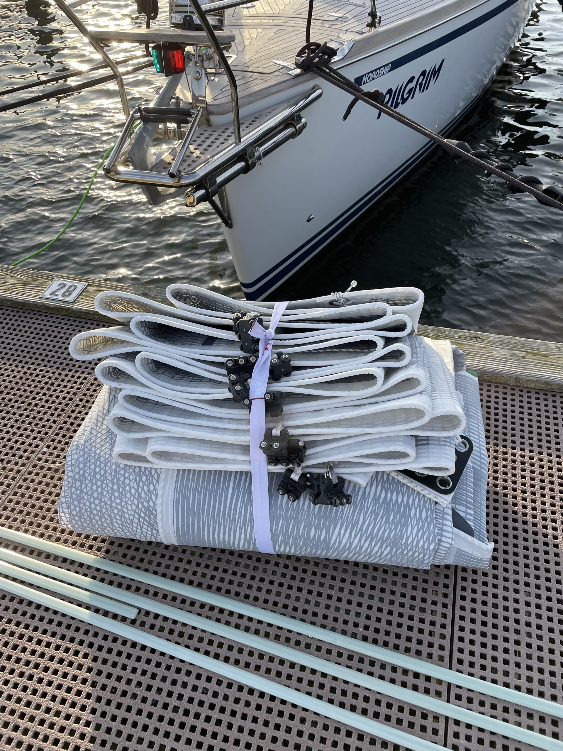 Vorsegel ist runter Baum ist verzurrt alle Leinen sind gesichert alle Fallen sind gezogen