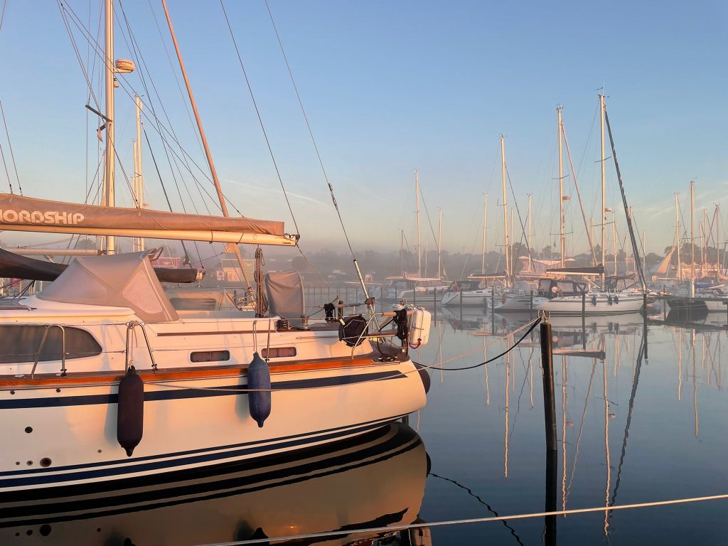 Wir wollten zwar morgens früh los, aber der Nebel des Grauens bescherte uns einen zweiten Kaffee und einen späteren Start. Auch nicht schlimm. Irgendwann verzieht sich der Nebel und wir starten unseren Absegeltörn ins Winterlager.