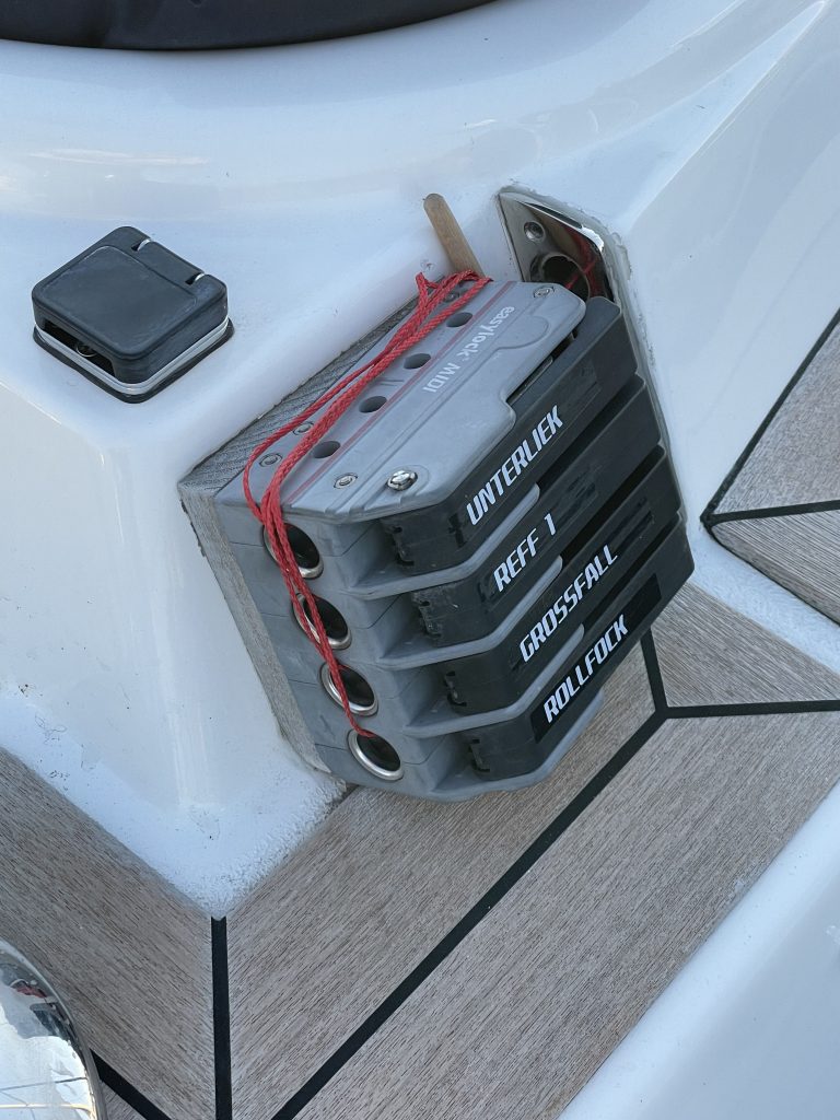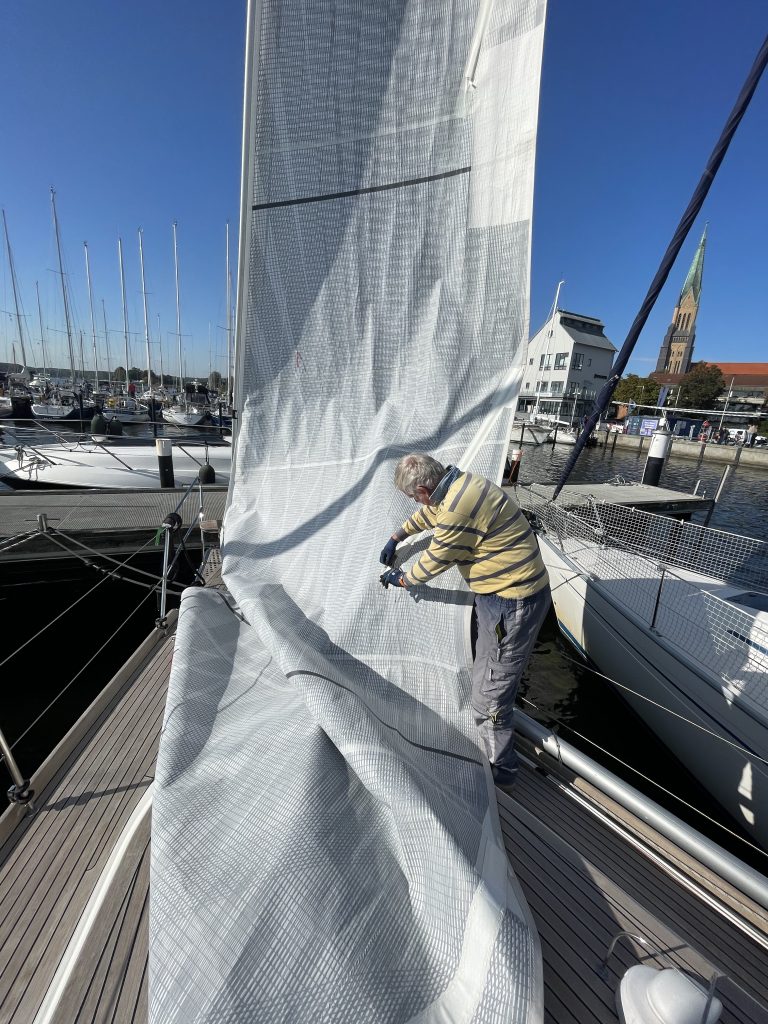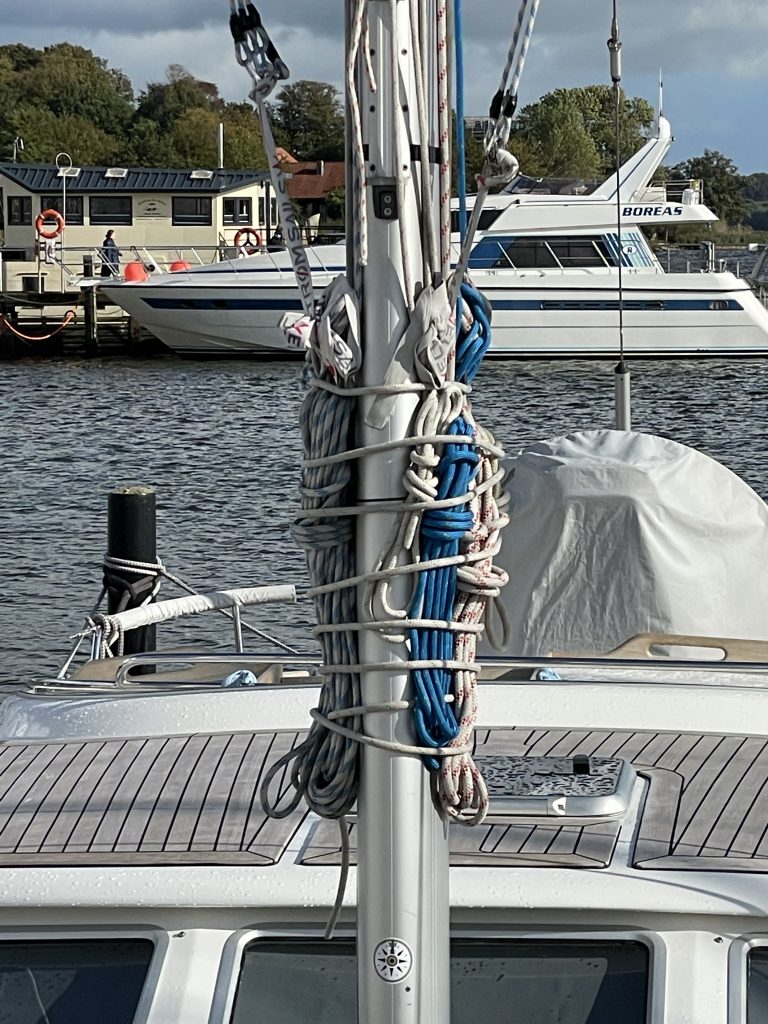 Vorsegel ist runter Baum ist verzurrt alle Leinen sind gesichert alle Fallen sind gezogen