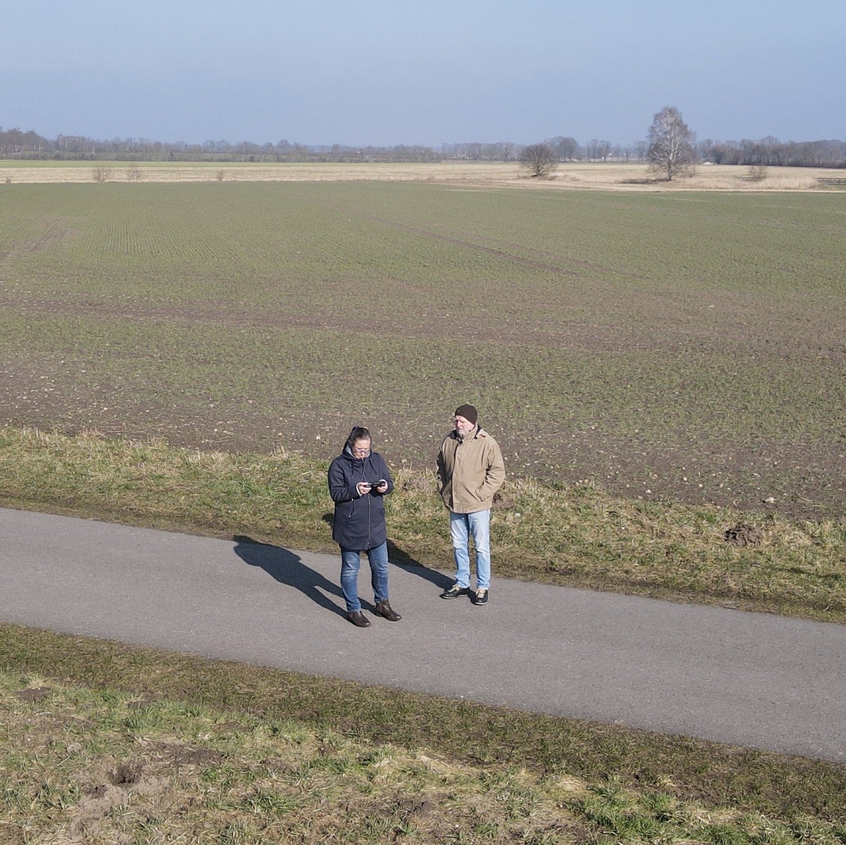 Jetzt geht es mit der Drohne in die Luft zum üben. Wir haben uns ein freies Feld gesucht, damit uns erstmal nichts in die Quere kommt. Das Schwierige ist auch weniger das Fliegen an sich – starten und landen kann die Drohne auch alleine – aber alles andere… „von Hand“ starten und landen, zur richtigen Zeit die richtigen Befehle auf der Fernbedienung finden, die vielen vorprogrammierten Flugmanöver richtig einsetzten. Uns qualmt ein wenig der Kopf. Aber wir üben fleißig, denn wir wollen Willy ja nicht in den Weiten der Ostsee verlieren.