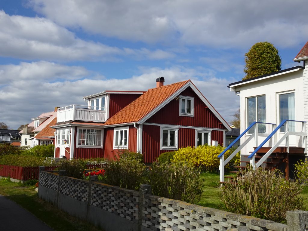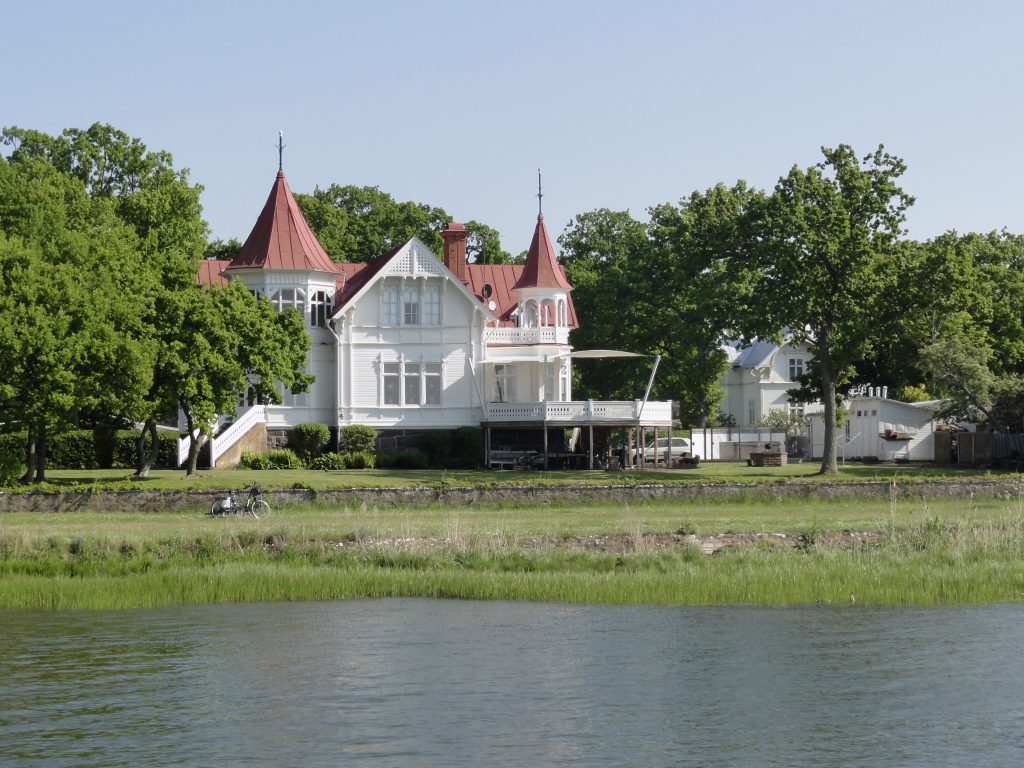 Borgholm ist ein niedliches Städtchen mit einem Grundriss, wie man ihn z.B. aus Manhattan kennt: eine zum Hafen führende Hauptstraße (Storgatan) und davon rechtwinklig abzweigende Seitenstraßen. Hübsche Häuschen säumen die Straßen, nette Geschäfte und eine zentrale große Kirche, die ursprünglich als Schule diente, laden zum Spaziergang ein. Und auf dem Weg zum Schloss, an der Küste entlang, haben größere Herrschaftshäuser einen fantastischen Blick auf den Kalmarsund.