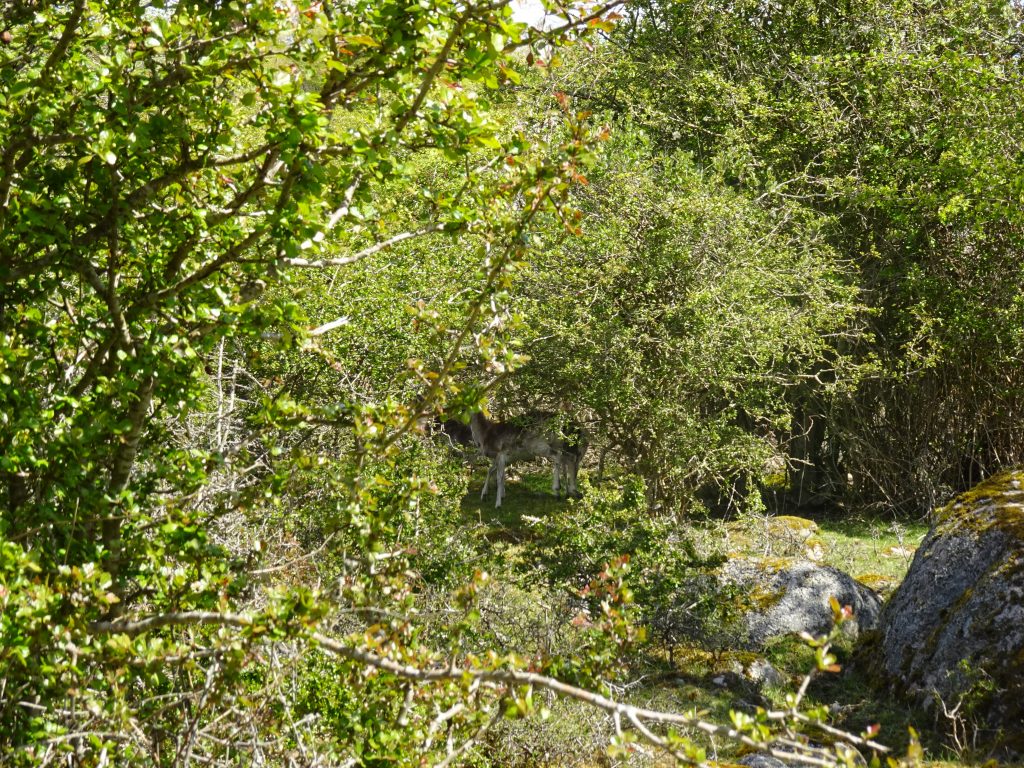 Bezüglich der Wanderung entschließen wir uns, doch nur den Weg zum Leuchtturm und dem englischen Friedhof zu erwandern. Die entspr. Wanderwege sind sehr gut markiert, aber man muß schon trittsicher sein… die Bezeichnung „Wege“ ist auch etwas übertrieben, es geht im wahrsten Sinne über Stock und Stein. Hat aber Spaß gemacht! Und über das Wetter können wir uns nach wie vor nicht wirklich beschweren: zwar (zu) viel Wind, aber meist strahlender Sonnenschein. Und fünf von den ca. 150-200 Stück auf der Insel frei lebendem Damwild haben wir auch gesehen! Die waren, als sie uns erblickten, genauso überrascht wie wir.
