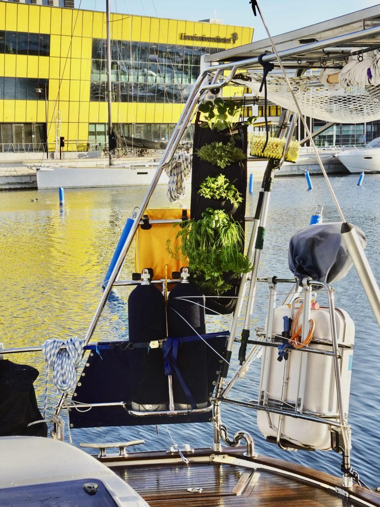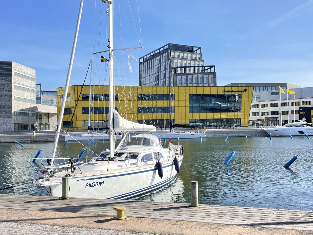 Der Yachthafen in Kalmar liegt glücklicherweise recht geschützt, sodaß der Starkwind beim anlegen keine Probleme macht. Gut geschützt auch, weil direkt am Hafen die Universität von Kalmar (Linnæus-Universität) neue große und interessante Gebäude gebaut hat. Ist eben ein Stadthafen und nicht so ein kleiner, gemütlich Hafen wie Hanö. Aber für ggf. einige Starkwind-Hafentage genau die richtige Umgebung. Und Kalmar als Stadt gefällt uns sehr gut. Hier waren wir schon mehrfach.