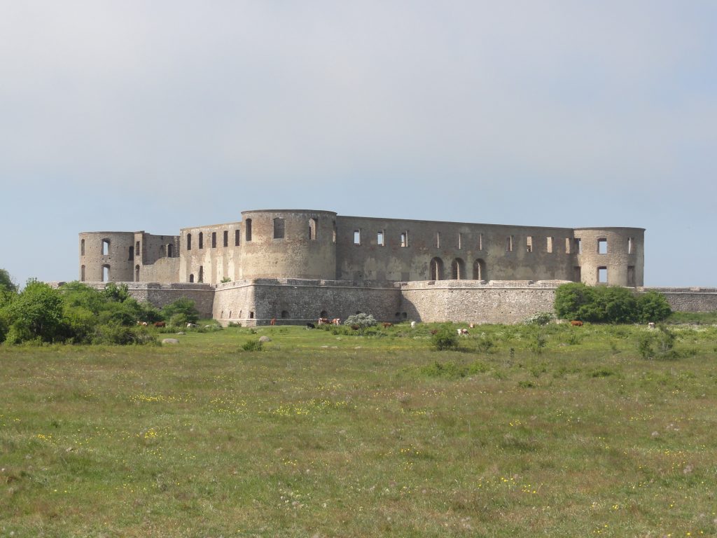 Übrigens thront über der Stadt die ursprünglich aus dem 12. Jahrhundert stammende Burgruine von Schloss Borgholm. Aus dem ursprünglichen Wehrturm aus dem 12. Jahrhundert entwickelte sich in der Renaissance ein wehrhaftes Schloss mit mehreren Flügeln und wurde im 17. Jahrhundert zu einer bedeutenden Barockanlage umgestaltet. Dann verlor das Schloss an Bedeutung, wie auch Schloss Kalmar, und verfiel langsam. 1806 zerstörte ein Brand das Schloss – bis auf die mächtigen Mauern. Die Ruine ist bis heute erhalten und für Besucher zugänglich.
