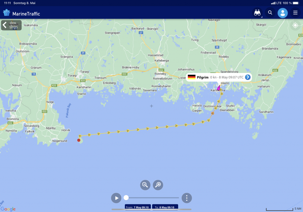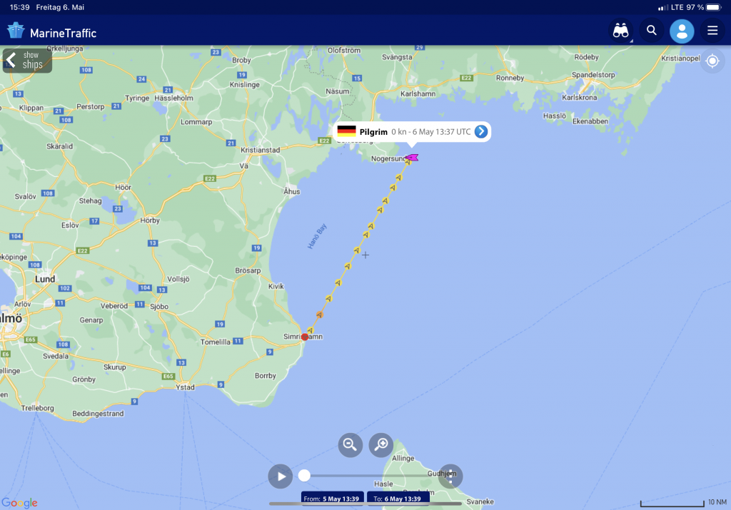 Der nächste Morgen graut… und der Wecker weckt – leider. Und das an einem Sonntag (08. Mai). Wie auch schon gestern, nur diesmal schon um 04.00h: Wetter checken und… für gut genug befunden. Um 05.00h sind die Leinen los und wir verlassen Hanö in Richtung Karlskrona – das ist da, wo sich vor vielen Jahren mal ein russisches U-Boot verstecken wollte… und leider/glücklicherweise irgendwann auf Grund lief und entdeckt wurde.