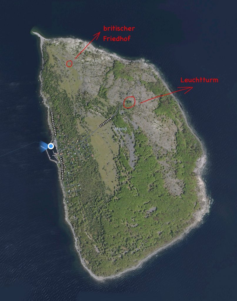 Während des Schwedisch-Englischen Krieges von 1810 bis 1812 war Hanö Stützpunkt der englischen Flotte. Unter anderen war die berühmte HMS Victory kurzzeitig hier stationiert. Glaubt man garnicht, bei dem kleinen Hafen. An die Ereignisse erinnert ein „Seamans Graveyard“ für 15 hier bestattete britische Seeleute. Eine Abordnung der Royal Navy errichtete 1972 ein großes Holzkreuz.