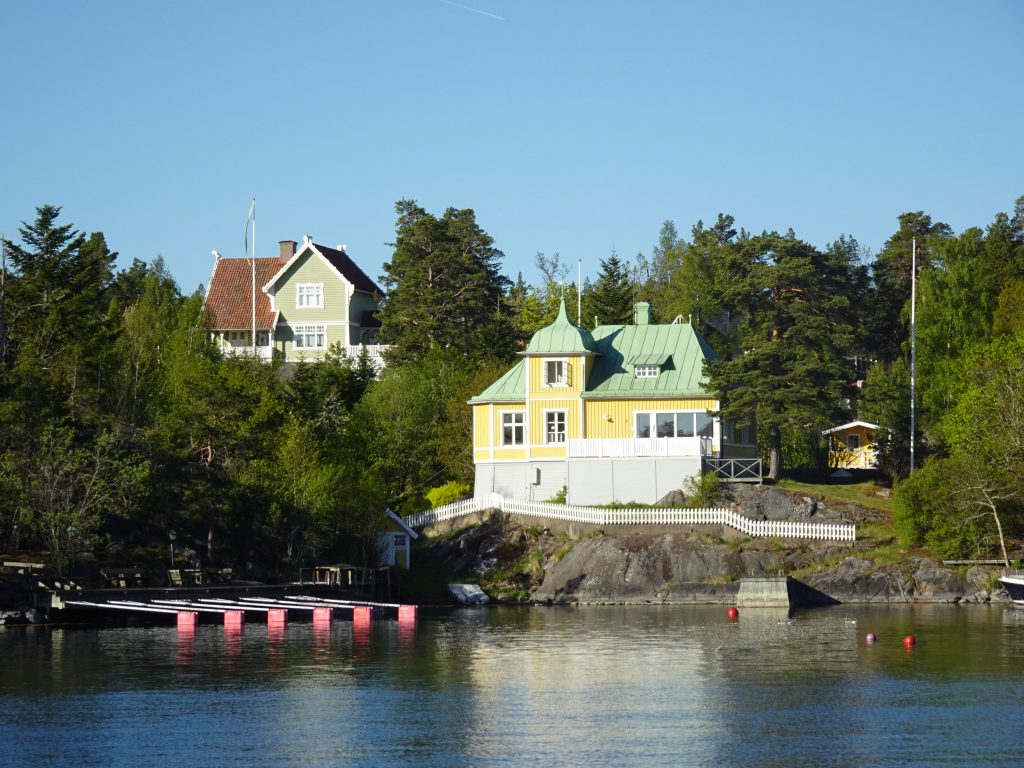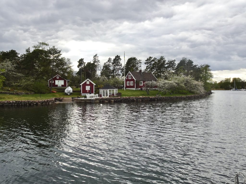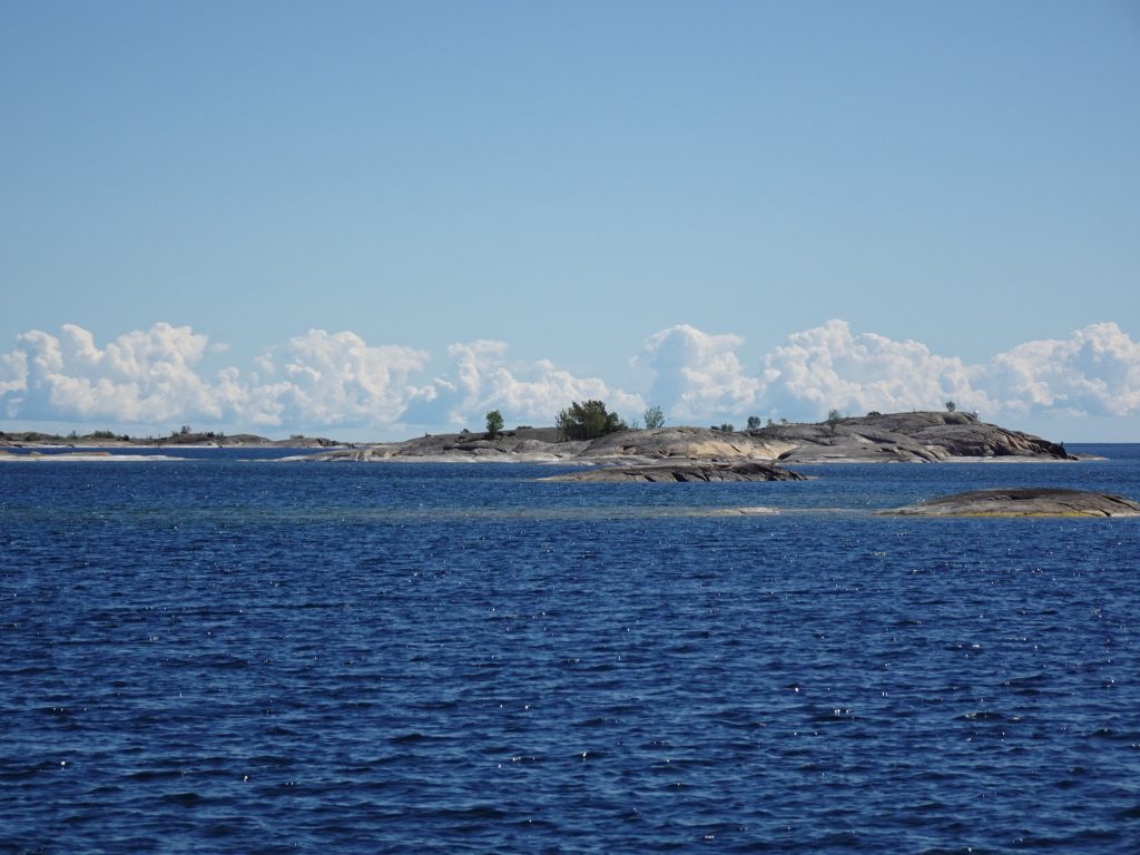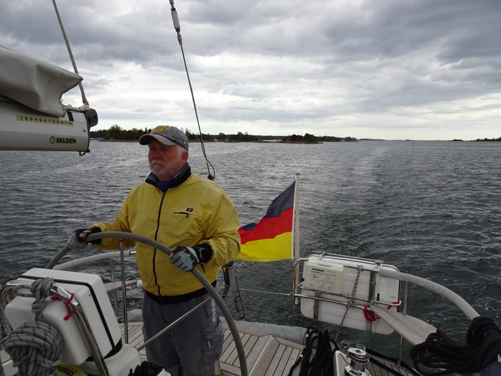 Der nächste Morgen begrüßt uns mit den von den letzten Tagen bekannten Geräuschen: der Wind pfeift heftig durch die Wanten. Das Schiff zerrt bei jeder einfallenden Böe kräftig an seiner Heckboje… die Boje muß ordentlichen was halten und wird dabei manchmal ganz unter Wasser gezogen. Aber sie hält gut. Was mag wohl draußen, also außerhalb der schützenden Schären, für ein Wind sein? Dunkle Wolken ziehen über uns hinweg… aber glücklicherweise bringen sie keinen Regen. Das richtige Wetter für einen Hafentag. Alles richtig gemacht – auch, wenn wir „eigentlich“ weiter wollen.