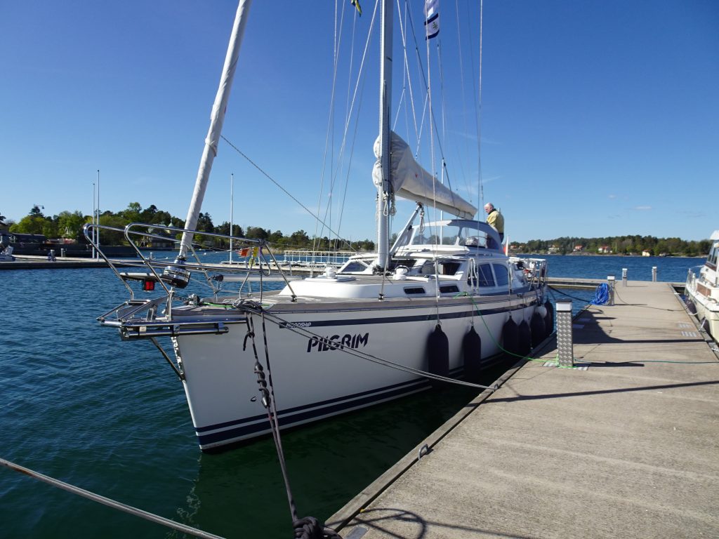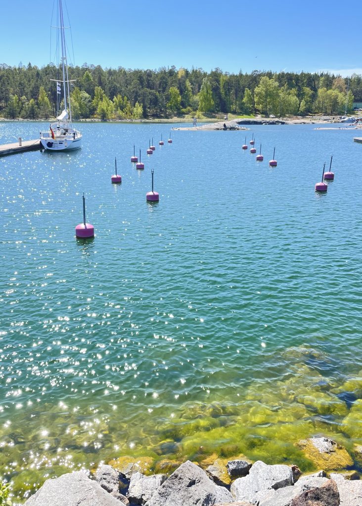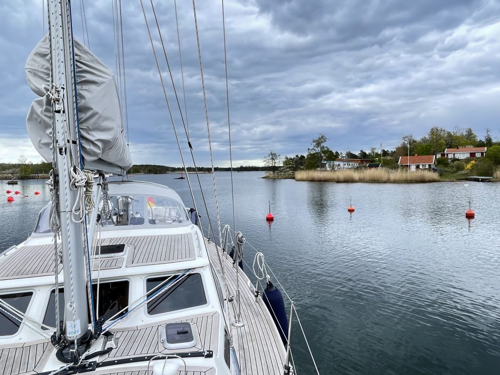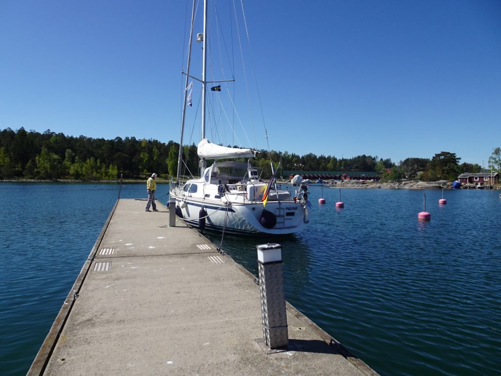 Als nächstes muss es aber endlich mal an eine Boje gehen. Zu dieser Jahreszeit sollte doch wohl noch eine Freie zu finden sein. Vom schwedischen Seglerverband Svenska Kryssarklubben (SXK) – quasi der schwedischen Variante der deutschen Kreuzerabteilung – sind an vielen Stellen in den Schären blaue Bojen ausgelegt. Als Mitglied darf man sie nutzen und muss dann nicht seinen Anker ausbringen. Fühlt sich aber genauso an. Und wir sind Mitglied. Durch eine kleine Flagge, die man am Schiff befestigt, legitimiert man sich. Denn auch Nichtmitglieder dürfen diese Bojen nutzen. Allerdings nur, wenn kein Mitglied Anspruch erhebt.