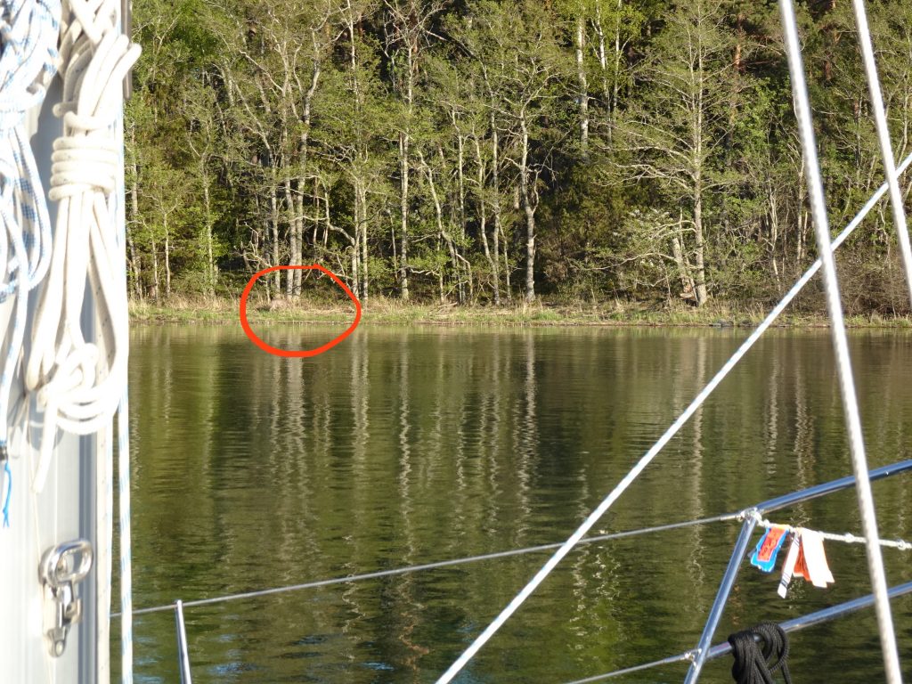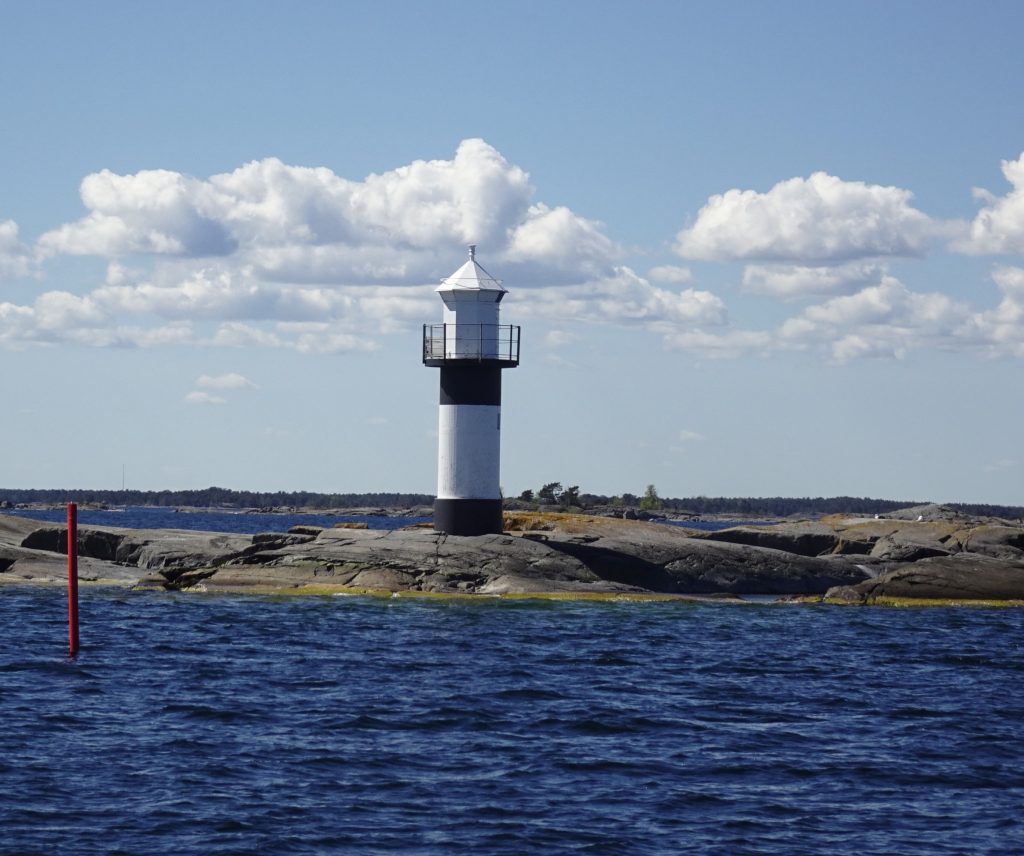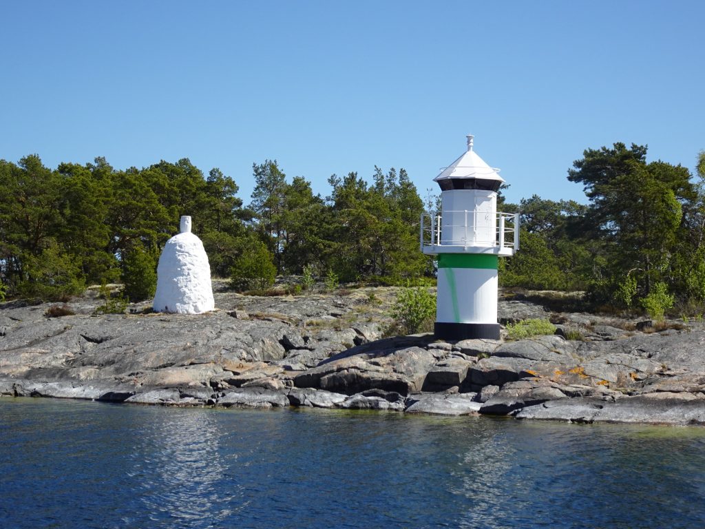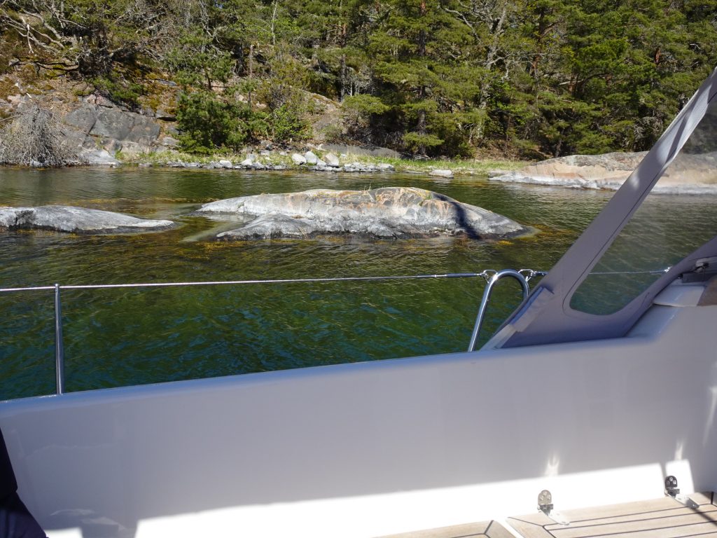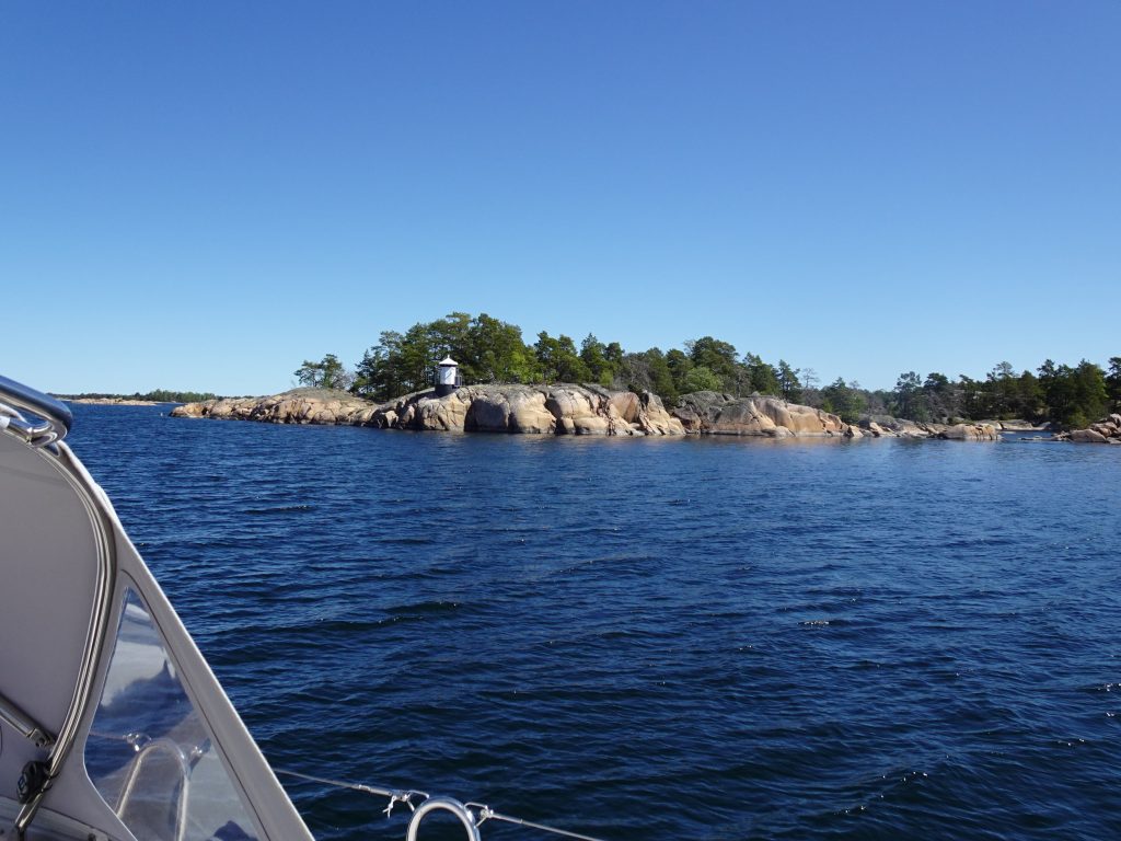 Und dann die Ausfahrt aus Figeholm… gut 2sm durch die Schären… gegen die Sonne… das bringt den Puls richtig in Wallung. Wir können nämlich – gegen die Sonne – die Farbe der Fahrwassertonnen überhaupt nicht erkennen. Und es ist in diesen Gewässern wichtig, das Fahrwasser korrekt zu fahren. Ok, ok, die elektronischen Hilfsmittel an Bord zeigen die Tonnen und die Position des Schiffes exakt an, aber es ist halt ein an manchen Stellen reichlich schmaler Weg zu fahren. Da fühlen wir uns sicherer, wenn wir die Tonnen eindeutig identifizieren können.