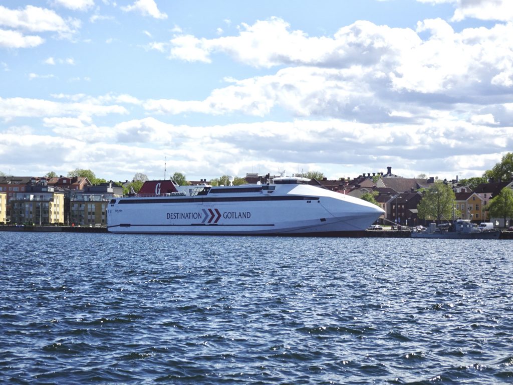 Und eine riesige Fähre liegt hier im Hafen, obwohl wir die Zufahrt schon reichlich schmal fanden. Scheint aber wohl zu passen. Sie bedient die Strecke Västervik-Visby (Gotland) – aber erst ab Mitte Juni.