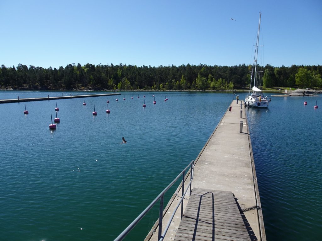 Wir suchen uns Stora Alö aus, eine etwas größere Schäre, und wirklich alle ausliegenden SXK-Bojen sind frei. Im Sommer ist hier vermutlich der Bär los, denn es liegen sechs blaue Tonnen bereit und es gibt auch einen kleinen Steg, an dem man mit ausliegenden Heckbojen festmachen kann – die große Anzahl dieser roten Heckbojen lässt für die Hauptsaison nichts Gutes erahnen. Gut, dass wir hier jetzt alleine sind. Erst spät am Nachmittag kommt noch ein weiteres Segelboot und macht ebenfalls an einer blauen Boje fest.