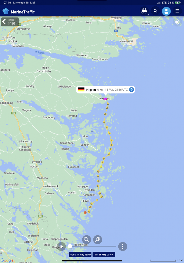 An unserem nächsten Zielhafen Oxelösund übrigens auch nicht. Strom ist zwar an den Stegen schon angestellt, Wasser aber noch nicht und der Automat zum Bezahlen ist „out of order“. Ist auch ok, denn wirklich schön ist es hier nicht. Aber für die weitere Etappe nach Nynäshamn ist ab Mittags zuviel Wind vorhergesagt. Also kurz hier in Oxelösund im Hafen etwas verstecken und morgen weiter an einen hübscheren Ort.