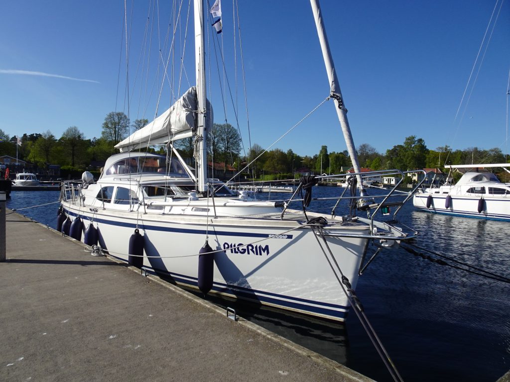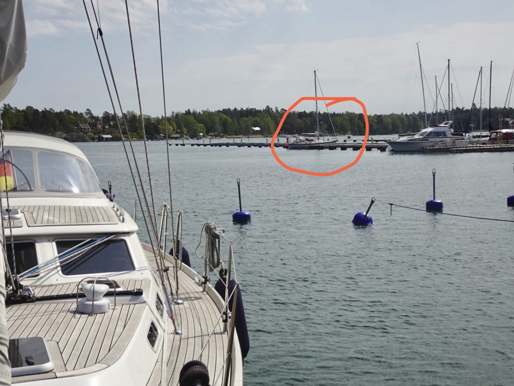Eine Nordship zu treffen ist immer irgendwie schön. Es ist einfach kein in großer Stückzahl gebautes Schiff und daher relativ selten zu treffen. Ulf hat hier mit „Tindra“ seinen Sommerliegeplatz und gibt uns sogleich reichlich Tipps für nette Häfen auf den Ålands und der Höga Kusten, der etwa 500 km nördlich von Stockholm gelegenen Küstenregion am Bottnischen Meerbusen. Ich mache mir reichlich Notizen… mal schauen, was wir davon alles anfahren können. Ulf erzählt uns auch, daß in diesem Jahr der Sommer etwa 2-3 Wochen zu spät ist. Es ist einfach noch deutlich kälter als normalerweise. Trotz viel Sonnenschein.