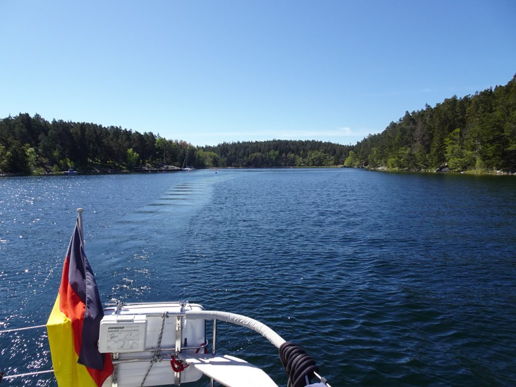 Am Sonntag geht es dann aber weiter… wieder an eine Boje im Stockholmer Schärengarten. Dieser Archipel ist die größte Inselgruppe in Schweden mit mehr als 30.000 Inseln, Inselchen und Felsen und erstreckt sich von Schwedens Hauptstadt, die alleine auf 14 mit mehr als 50 Brücken verbundenen Inseln liegt, bis 80km in die Ostsee hinein und über 150km von Nord nach Süd.