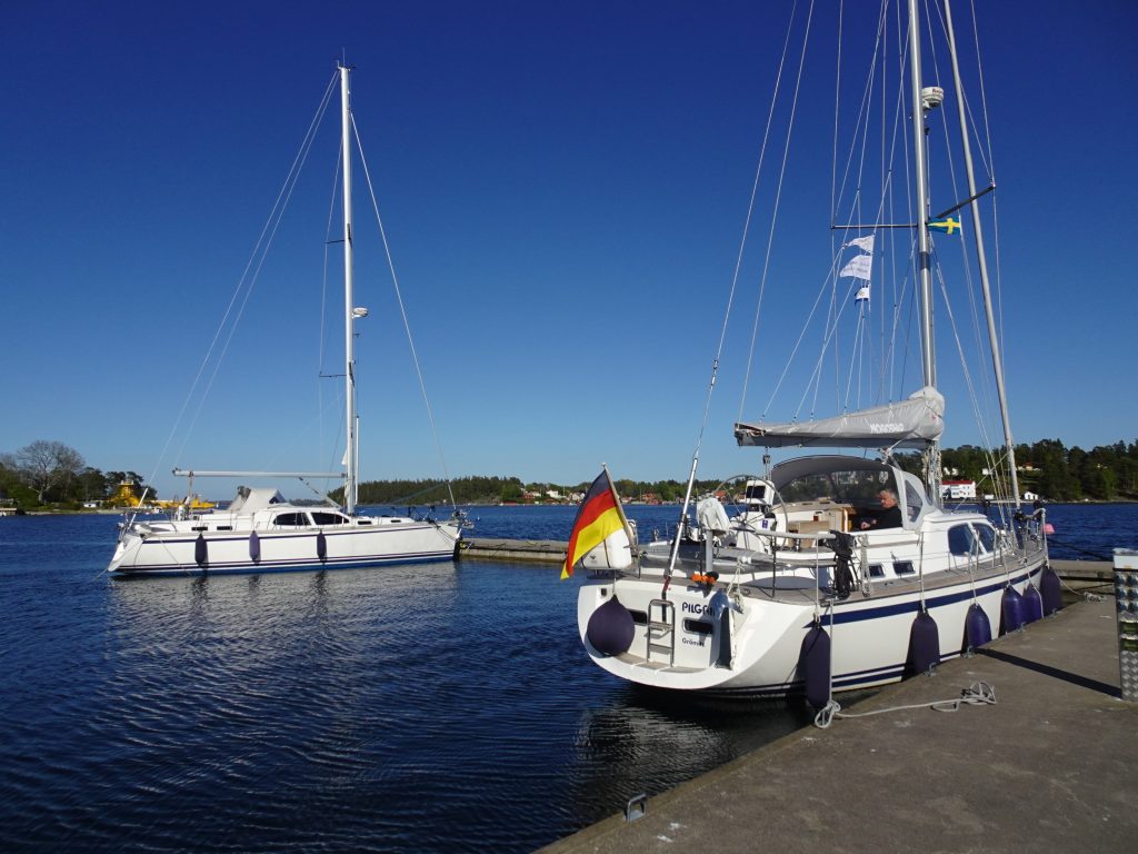 Die Tage in Nynäshamn sind sehr entspannt. Es sind dann wegen des andauernden (zu) kräftigen Nordost-Windes dann doch zwei Hafentage geworden und wir nutzen die Zeit, um bei dem recht schnellen Hafen-WLan diverse Updates zu laden und die Kontakte zu anderen Seglern zu pflegen. Es liegen mehrere Schiffe hier, die wir unterwegs schon mal getroffen haben.