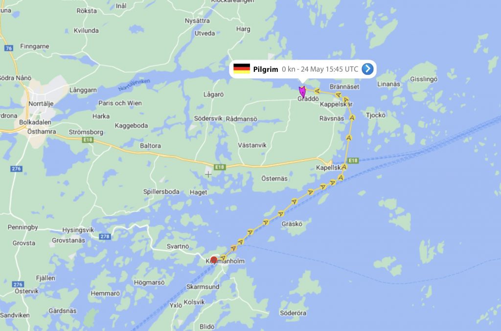 Das gestaltet sich allerdings als anspruchsvolle Aufgabe, denn die Antworten lauten jeweils: „wir haben keine Zeit bis Mittsommer“. Dann schaltet Kalli den VolvoPenta-Kundenservice ein und nach einiger Zeit können sie uns tatsächlich einen Hafen in der Nähe nennen, der mal schauen will, ob er Pilgrim dazwischen schieben kann. Na immerhin. Und wenn wir erstmal da sind, müssen wir eben ein bisschen auf die Tränendrüsen drücken. Vier Wochen – bis Mittsommer – zu warten ist jedenfalls überhaupt keine Option.