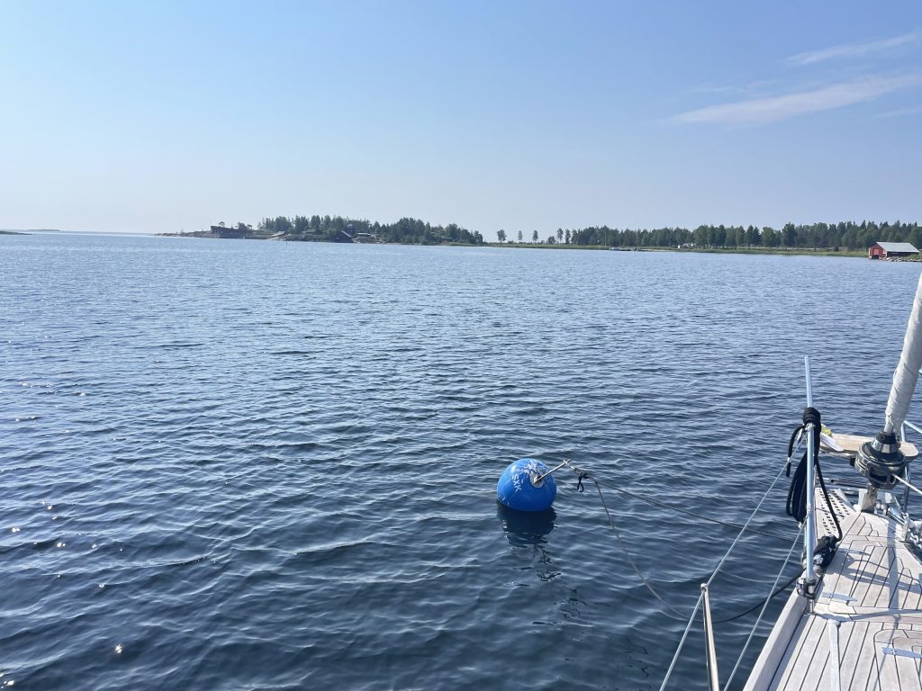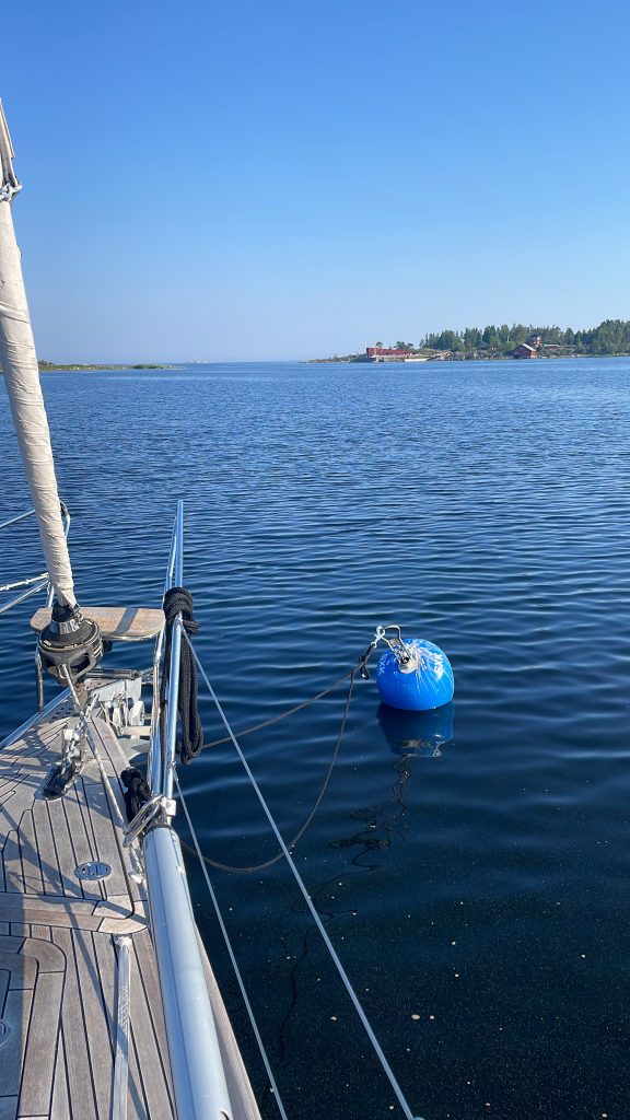 Aber dann… Wasser bunkern, tanken und endlich los. Inzwischen ist es nämlich im Hafen reichlich warm geworden (26°C), die Luft bewegt sich kaum und wir freuen uns auf etwas Abkühlung durch den Fahrtwind beim segeln. Kaum haben wir die ersten Meilen im Kielwasser, zeigt unser Tiefenmesser endlich mal wieder über 30m Wassertiefe an. Das hatten wir während unserer gesamten Zeit in Finnland wirklich nur sehr sehr selten.