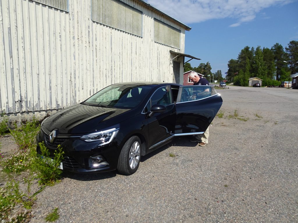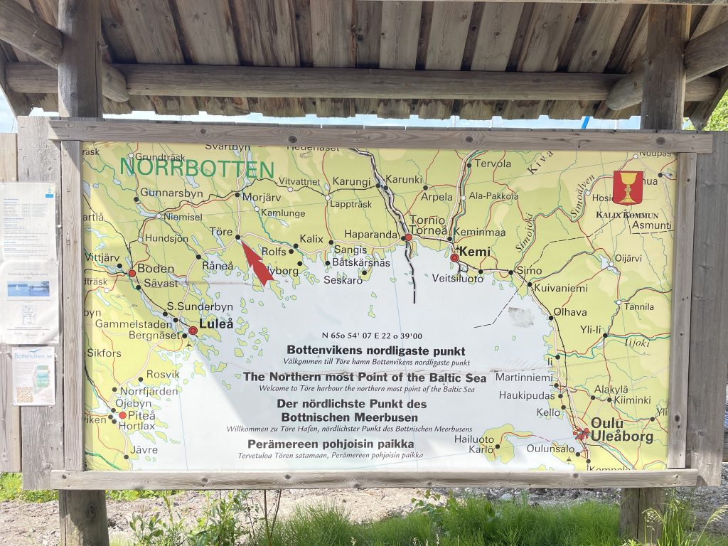 Und wir finden ihn bei der Hertz-Autovermietung in Umeå. Morgens um 9 Uhr können wir eines der letzten verfügbaren Autos in Empfang nehmen und machen uns mit einem Renault Clio auf den Weg nach Töre, einem Ort ganz im Norden der Ostsee. Kurz vor der Finnischen Grenze liegt hier die nördlichste Tonne der Ostsee im Wasser. Und eigentlich wollten wir – eher ich – hier mit dem Schiff hin. Nun ja – kann nicht alles klappen. Aber nun sind wir doch hier. Nach 320km über die meist sehr gut ausgebaute E4 und eine ziemlich lange Baustelle mit Schotterpiste erreichen wir das Mekka der Ostsee-Segler.