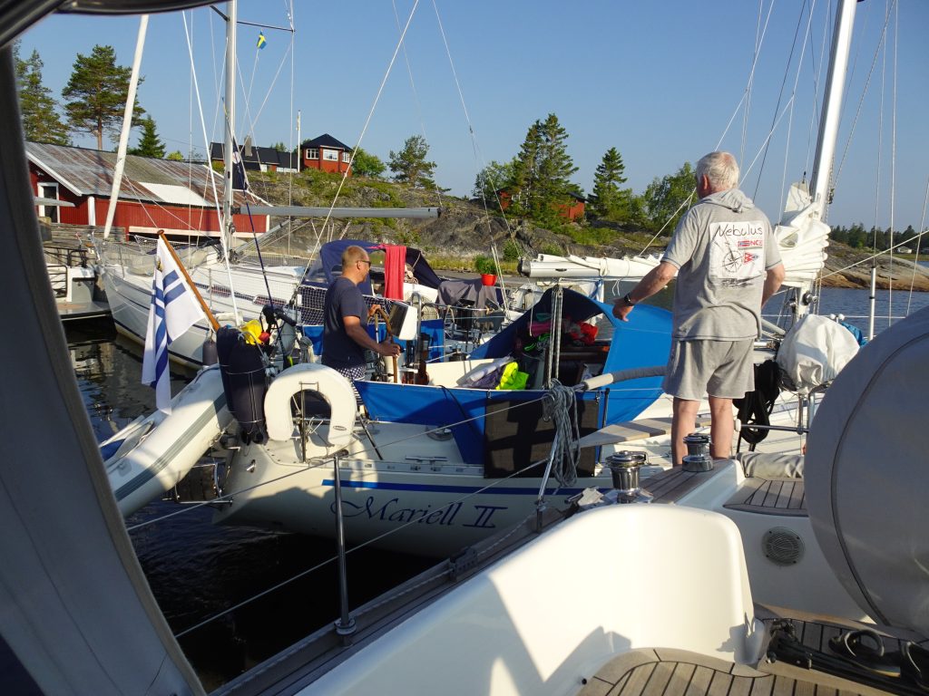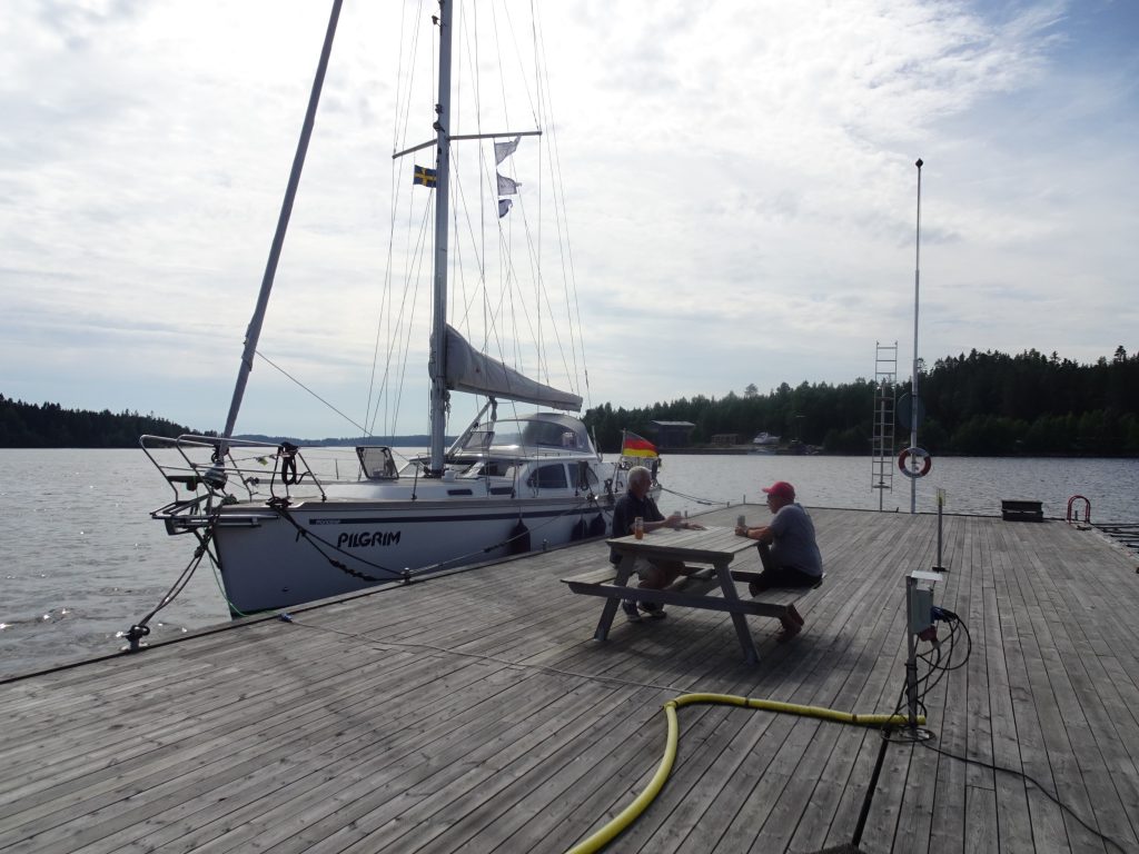 Zurück an der schwedischen Küste muss die Entscheidung fallen, ob wir weiter gen Norden segeln oder im Urlaubstempo gen Süden. Schwere Entscheidung, allerdings etwas unterstützt durch mehrere sehr umfangreiche Exel-Listen mit diversen möglichen Häfen, Entfernungen, Hafentagen, die wir uns als Vorbereitung der Reise erstellt haben. Es gibt sowohl eine Liste entlang der schwedischen Küste, als auch eine entlang der finnischen Küste. Und beide Listen sagen: wenn es weiter gen Norden gehen soll, müsste aber auch wirklich alles passen. Doch es wäre vermessen – bei unserem bisherigen Wind-Glück – davon auszugehen. Und lt. diesen Listen haben wir etwa 2 Wochen Verspätung – Dank an die Kappelner Brücke und den vielen Wind der letzten Wochen. Unsere Interessen sind zudem auch ein ganz klein wenig unterschiedlich. Abwägen zwischen: mal bei passendem Wind die eine oder andere längere Etappe segeln – ist ja lange hell hier – oder häufiger in Buchten ankern… mal bei etwas mehr Wind unterwegs sein oder, wie bisher, nicht… die nördlichste Tonne der Ostsee mal live sehen oder eben nicht. Da Kalli, deutlich mehr als ich, die letzte Zeit mit den widrigen Windverhältnissen gehadert hat, suchen wir nach einem guten Kompromiss.