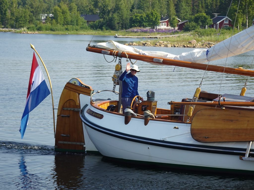 Der Finne freut sich über eine deutsches „Dankeschön-Bier“ und mit dem netten Holländer (77), der unsere Leinen beim Anlegen angenommen hat, teilen wir uns zum Abendessen einen Tisch auf der Restaurant-Terrasse. Er hat viel zu erzählen, ist z.Zt. wegen erkrankter Crew alleine unterwegs (!) und wohl schon überall auf der Welt mit seinem Schiff gewesen. Ein netter Abend, den wir auf seinem Schiff „‘t Gauwe Haentje“ mit leckerem Genever beschließen.