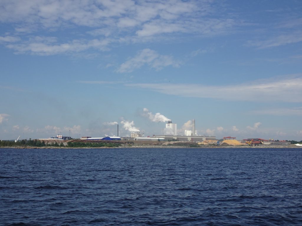 Wir machen uns auf den Weg nach Örnsköldsvik und merken beim verlassen unserer geschützten Bucht, was über Nacht vor der Küste für ein Wind gewesen sein muß: es steht noch eine heftige alte Dünung von min. 1,5-2m vor der Küste und schaukelt uns mächtig durch. Doch nach wenigen Seemeilen können wir zwischen einigen Schären hindurch einen inneren Fahrweg wählen und merken sofort den Schären-Effekt: die Dünung ist sofort weg und wir können unsere Fahrt durch angenehm ruhiges Wasser – übrigens immer 30-50m tief – fortsetzen.