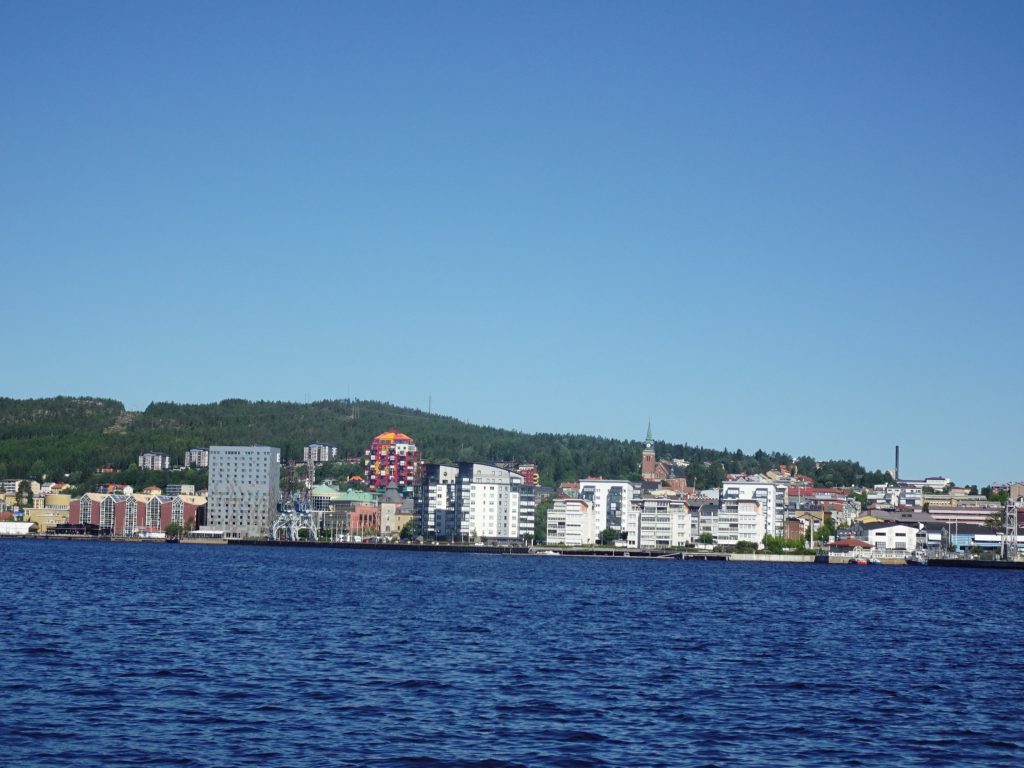 Hier beginnt die Region Höga Kusten, die, wie der Kvarken-Archipel, UNESCO-Weltnaturerbe ist. Bei der Einfahrt in den Fjord fühlen wir uns ein bisschen wie im Alpenvorland: die Küste wird etwas höher, und viel Wald, aber auch einige Wiesen säumen das Ufer.