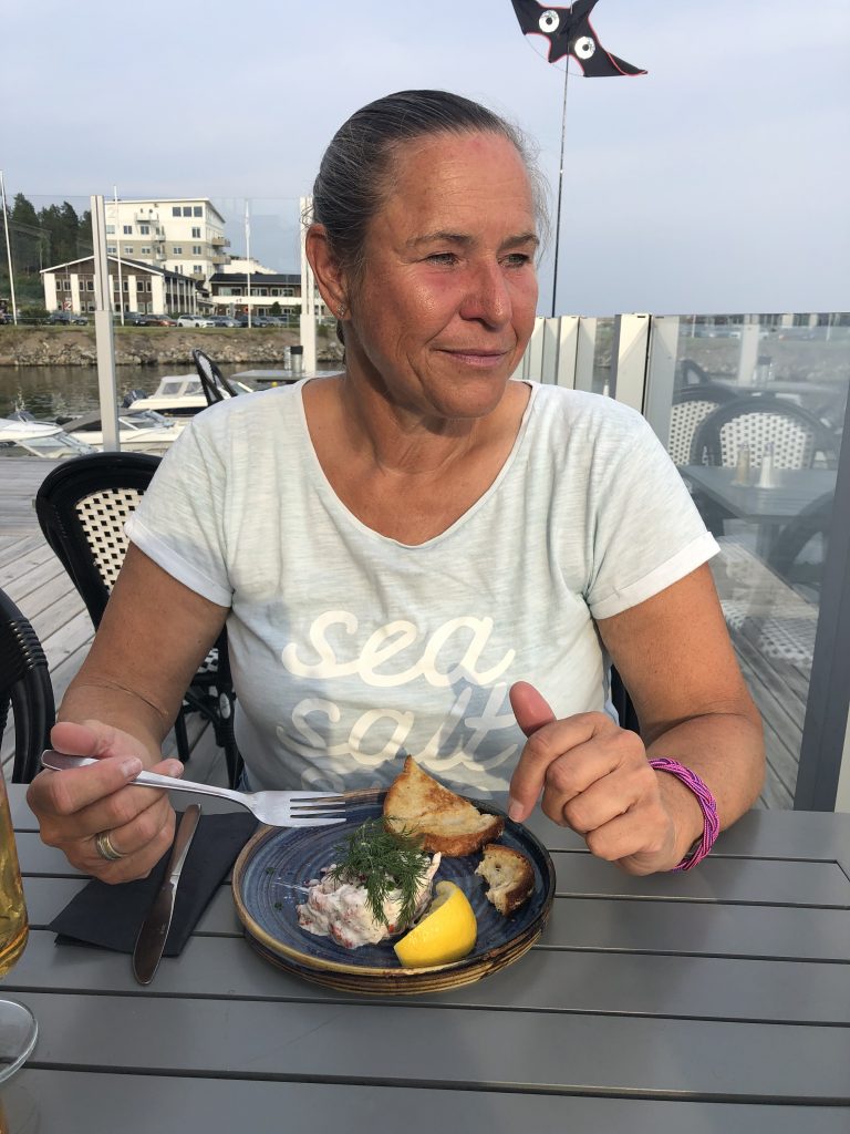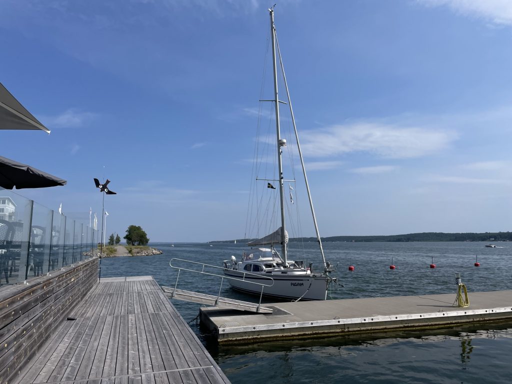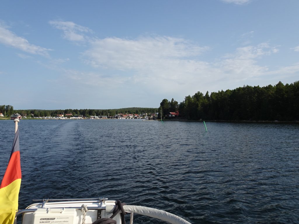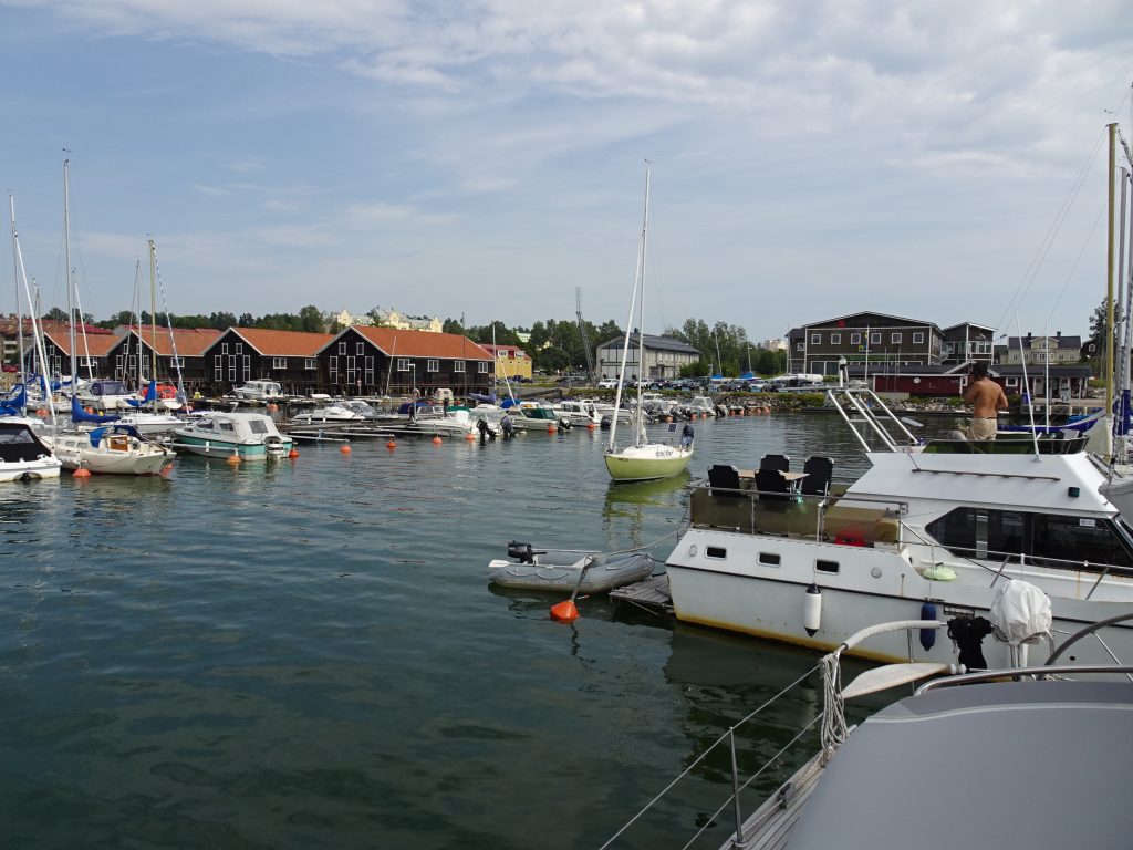 In Hudiksvall machen wir – erstmal – im Stadthafen fest. Und: unsere Motorsteuerung muckt beim anlegen wieder. Ein Schiffsnachbar, der unsere Misere mitbekommen hat, gibt uns gleich Telefonnummern von verschiedenen Monteuren, doch keiner hat Zeit bzw. ist nicht in der Stadt. Dann muss morgen wohl Kalli mal ran an die Ursachenforschung. Doch trotz des netten Nachbarn hält uns hier am Steg nichts. Nicht nur, dass die Plätze eng, die Heckbojen wiedermal zu kurz, der Schwimmsteg oll, die Nachbarn zwar nett aber laut sind ist alles irgendwie doof und rödelig. Das muss nicht sein. Wir legen folglich wieder ab und fahren ein kleines Stück zurück an einen Steg vor einem kleinen Hotel mit Restaurant. Neuer Steg, lange Heckbojen, niemand weiter da, folglich viel Platz… und gleich noch das Abendessen gerettet. Und das alles für den gleichen Preis wie im Stadthafen.