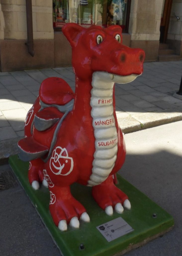 Sowohl Regen als auch kräftiger Wind – immer NordWest mit 5-6 Bft und starken Böen – halten sich hartnäckig. Für uns bedeutet das: noch etwas länger in Sundsvall bleiben und die Wetterbesserung abwarten. Und noch etwas die Stadt erkunden. Und noch einige Drachen ablichten.