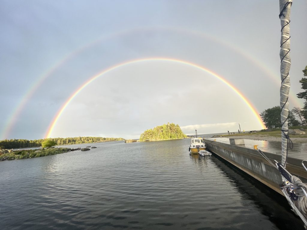 Da die Windvorhersage für morgen besten Wind – sowohl in Richtung als auch Stärke – für unser nächstes Ziel vorhersagt, montieren wir schon mal unseren Code Zero. Der ist in dieser Saison bisher nur einmal kurz zum Einsatz gekommen. Am Abend ziehen sich die Wolken allerdings wieder zu und lassen sogar etwas Regen raus. Doch Regen hat auch etwas schönes: viele Urlauber kommen aus ihren Wohnmobilen raus um einen grandiosen Regenbogen – sogar einen doppelten – zu bestaunen.