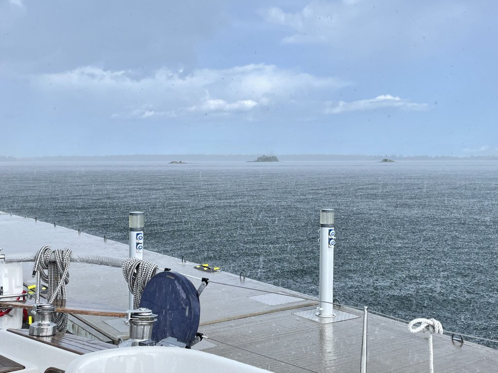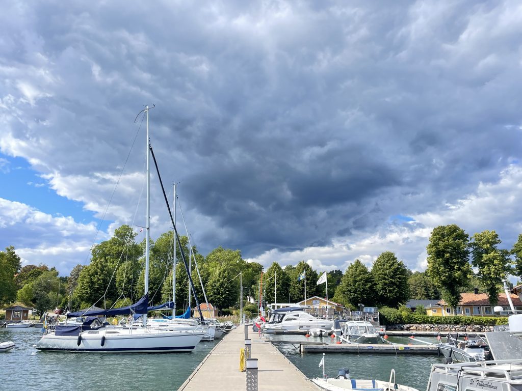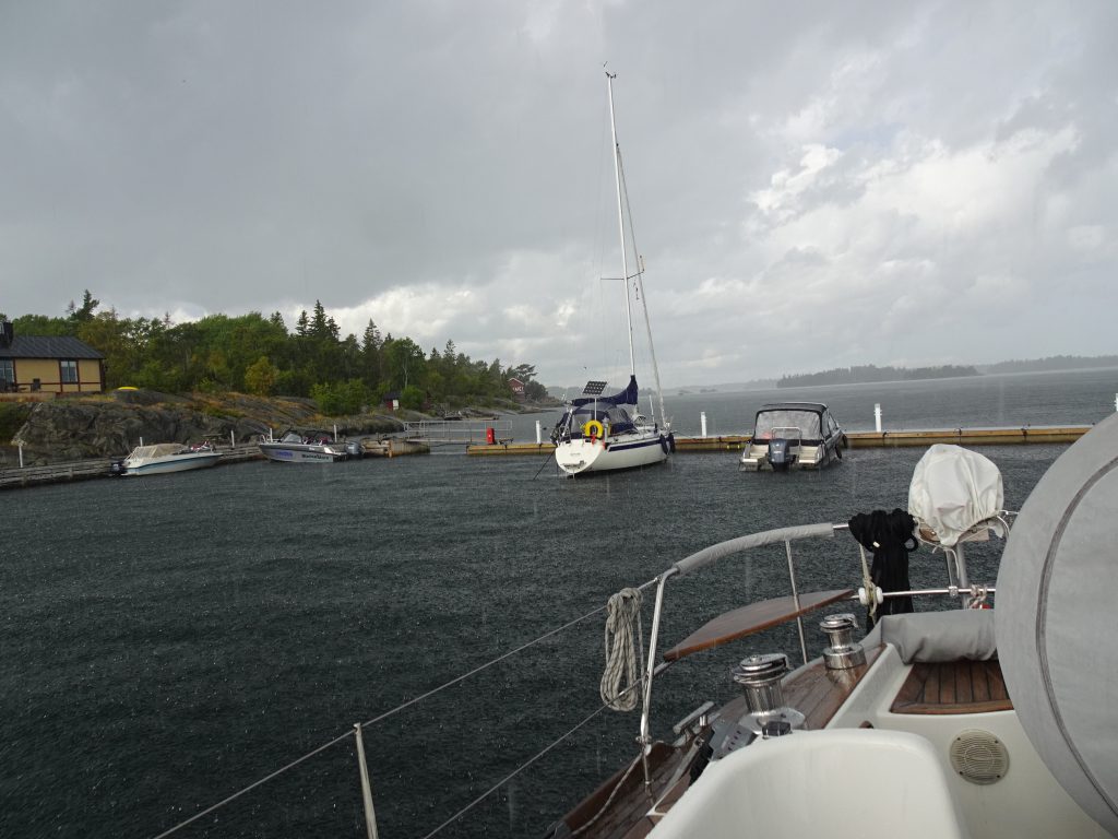 Wir bleiben noch einige Tage in Gräddö. Erstens muckt der Wind mal wieder und beglückt uns mit heftigen 6-er Böen, doch wenigstens scheint nach dem gestrigen heftigen Nachmittags-Regen meist wieder die Sonne. Es hat natürlich genau zu dem Zeitpunkt angefangen zu regnen, als ich mit einem Wäscheberg auf dem Weg zur Waschmaschine war 🧺🧺 Das mußte ja so sein. Und zweitens habe ich mir am gestrigen Abend, auf dem Weg zurück vom Pizza-Essen, irgendwie eine Sehne hinterm Knie gezerrt und kann nicht richtig auftreten. Das ist reichlich blöd bei Manövern an Bord, speziell beim ab- und anlegen. Der kräftige Wind gibt uns die Gelegenheit, das auszukurieren. Glücklicherweise – eher umsichtiger weise – gibt unsere Bordapotheke ein umfängliches Sammelsurium von verschiedenen Medikamenten her. Nach Rücksprache mit dem Orthopäden unseres Vertrauens – lieben Dank an Said – ist auch schnell die richtige Pille parat und sollte hoffentlich bald wirken. Die Ruhe während des Regen- und Starkwindtages tut ein übriges.