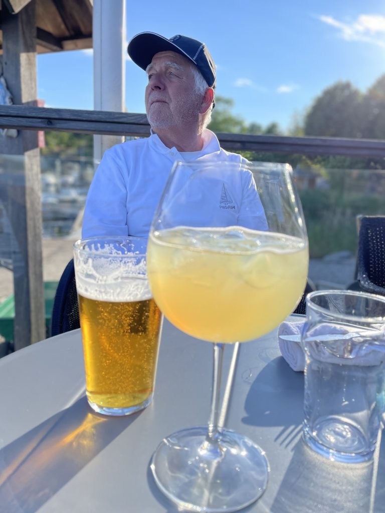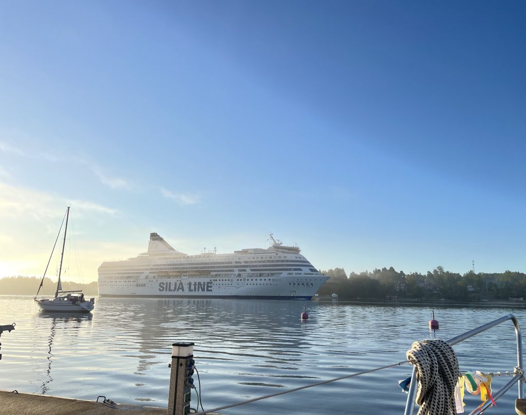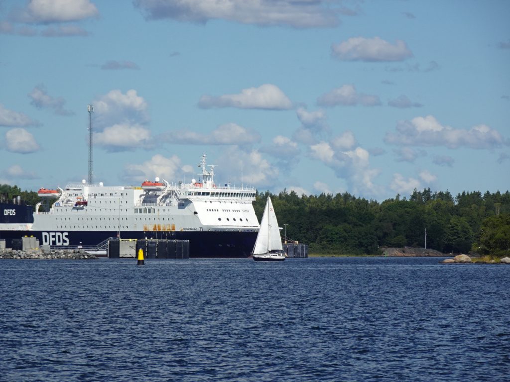 Abends testen wir noch das kleine Hafenrestaurant, das Ende Mai leider noch nicht geöffnet war. Der Wirt – und Hafenmeister – serviert leckere Pizza und Salat und wir genießen den milden Sommerabend. Später am Abend schleichen wieder die imposanten Jumbofähren am Hafen vorbei – max. 8kn Geschwindigkeit ist hier vorgeschrieben. Die Besatzung eines großen Motorbootes meint dann allerdings, noch eine Party an Bord feiern zu müssen🎶🎵. Komisch, dass nächtliche laute Musik zu 90% von Motorschiffen kommt. Segler haben offensichtlich bessere Ohren – oder Manieren? – und begnügen sich mit leiserer Musik. Jedenfalls muss sich Kalli mitternachts noch mal aus dem Bett schälen und energisch für Ordnung bzw. Ruhe sorgen. Das wirkt… die Musik wird deutlich leiser.