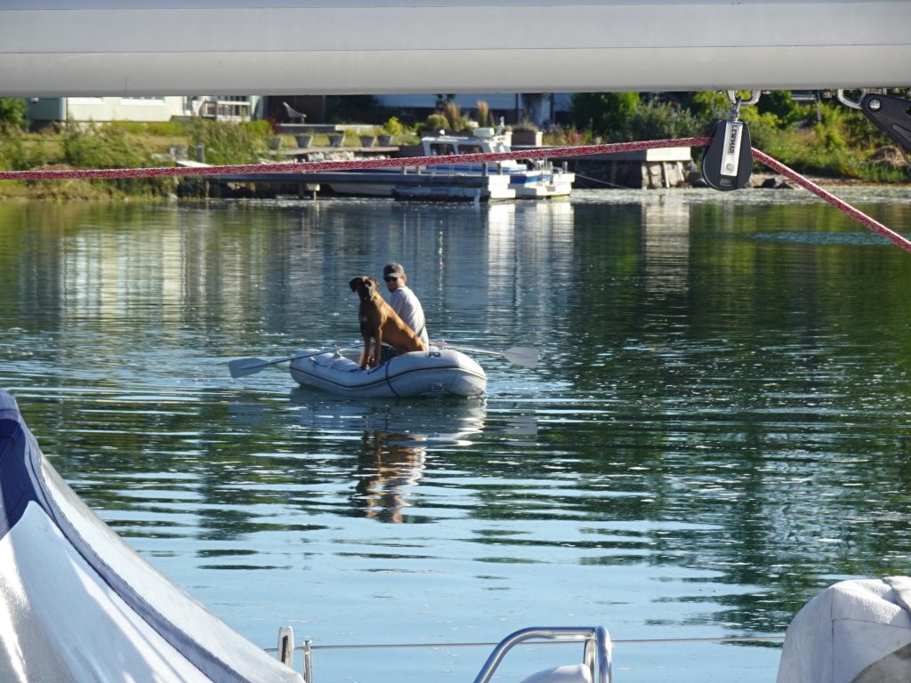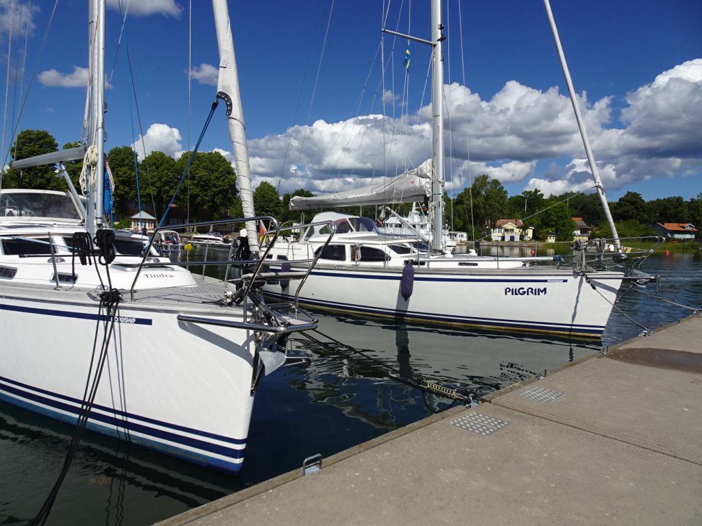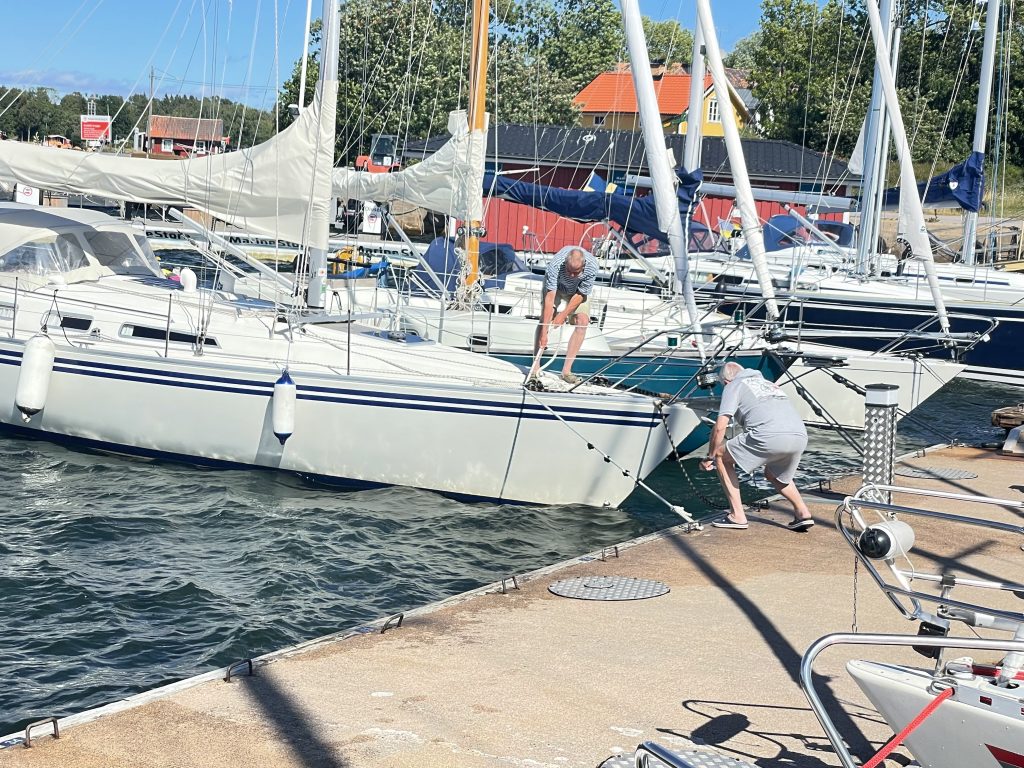 Da wir früh sind – wie meistens – ist eine Boje frei und wir ruckzuck am Steg fest. Später werden noch einige weitere Bojen frei, denn der Schwede an sich legt lieber später am Vormittag ab. Und da kommt mal wieder ein super netter Schwede ins Spiel: der macht nämlich kurz nach uns mit seinem kleinen Motorschiff fest und zwar an einem ziemlich breiten Platz, an dem vorher ein dickes Motorschiff gelegen hat. Wir hingegen liegen schon ziemlich eng zu den Nachbarn. Kalli fragt nach, ob sie über Nacht bleiben wollen und bekommt die Antwort: „ja, wollt ihr tauschen?“ Das ist ja mal supernett!! Gesagt… getan… getauscht… alle sind glücklich.