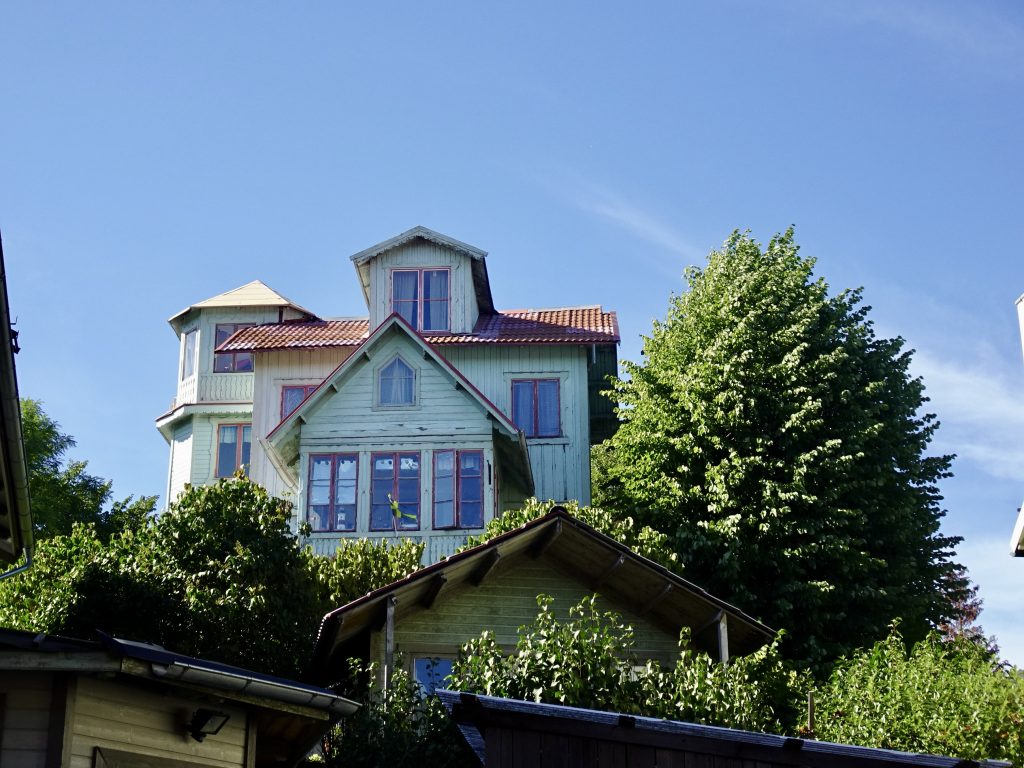 Bei einigen der Villen kann mann den Hauch des alten Badeortes noch spüren. Allerdings haben wir auch fast den Eindruck, wir sind zurück an der „Hohen Küste“… vom Hafen müssen wir erstmal über einen Berg, bevor wir zum Ort gelangen. Und einen Weg am Wasser entlang gibt es leider nicht… da versperren uns Privatgrundstücke den Weg.